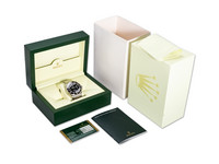 This example dates to 2010 and is presented in unworn condition, with the original factory protective stickers still intact—a rare and highly desirable find for collectors. The watch is offered as a full set, including the original Rolex box and papers.