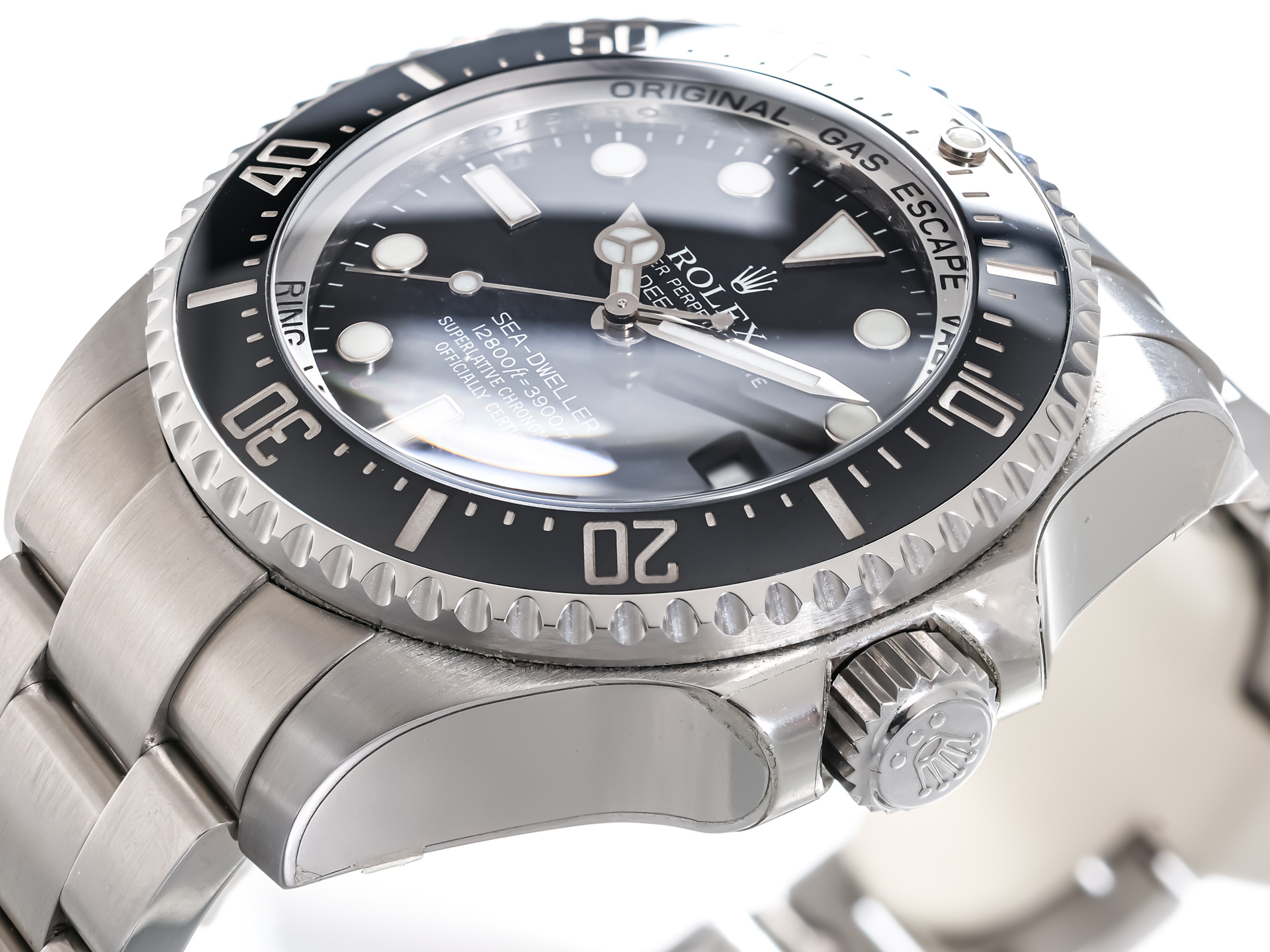 Leuchtzeiger, verschraubte Krone, Heliumventil, Zentralsekunde, Schnellschaltung, Chronometer, Originalzustand/Originalteile, drehbare Lünette, Leuchtindizies