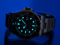 Leuchtzeiger, verschraubte Krone, Heliumventil, Zentralsekunde, Schnellschaltung, Chronometer, Originalzustand/Originalteile, drehbare Lünette, Leuchtindizies