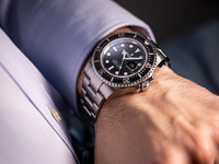 The stainless steel Oyster bracelet with Glidelock extension system allows for precise adjustment and maximum comfort, whether worn over a wetsuit or on the wrist in daily life.