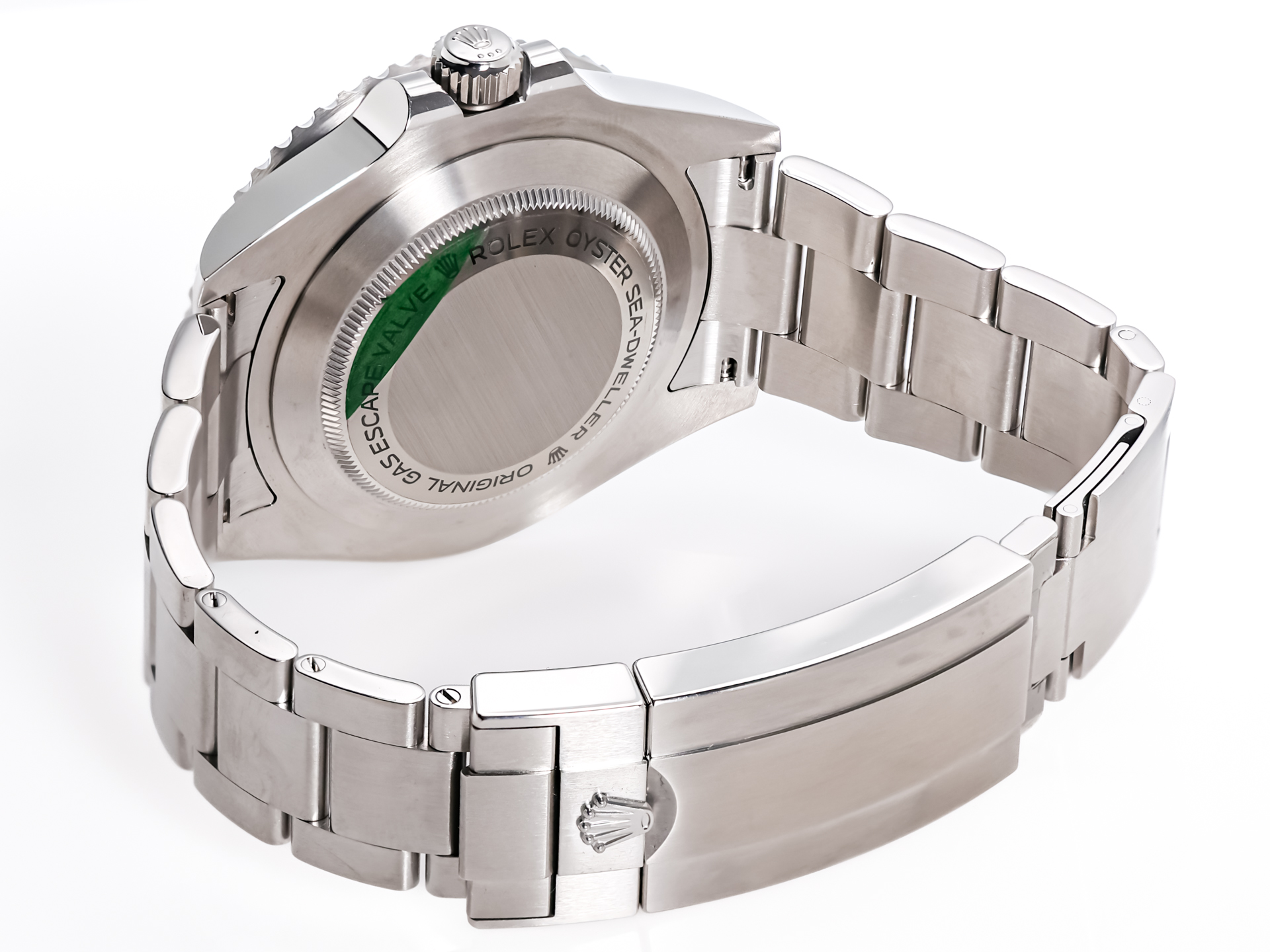 The robust 43mm Oyster case is engineered for extreme underwater performance, offering water resistance to an impressive depth of 1,220 meters (4,000 feet). Equipped with the helium escape valve, the watch is built to meet the demands of professional saturation divers.