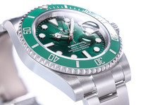 The 40 mm Oyster case, machined from Rolex’s highly durable 904L stainless steel, offers outstanding robustness and corrosion resistance. Its iconic profile, combined with the unidirectional rotating bezel fitted with a green Cerachrom insert, gives the “Hulk” its unmistakable and bold character.