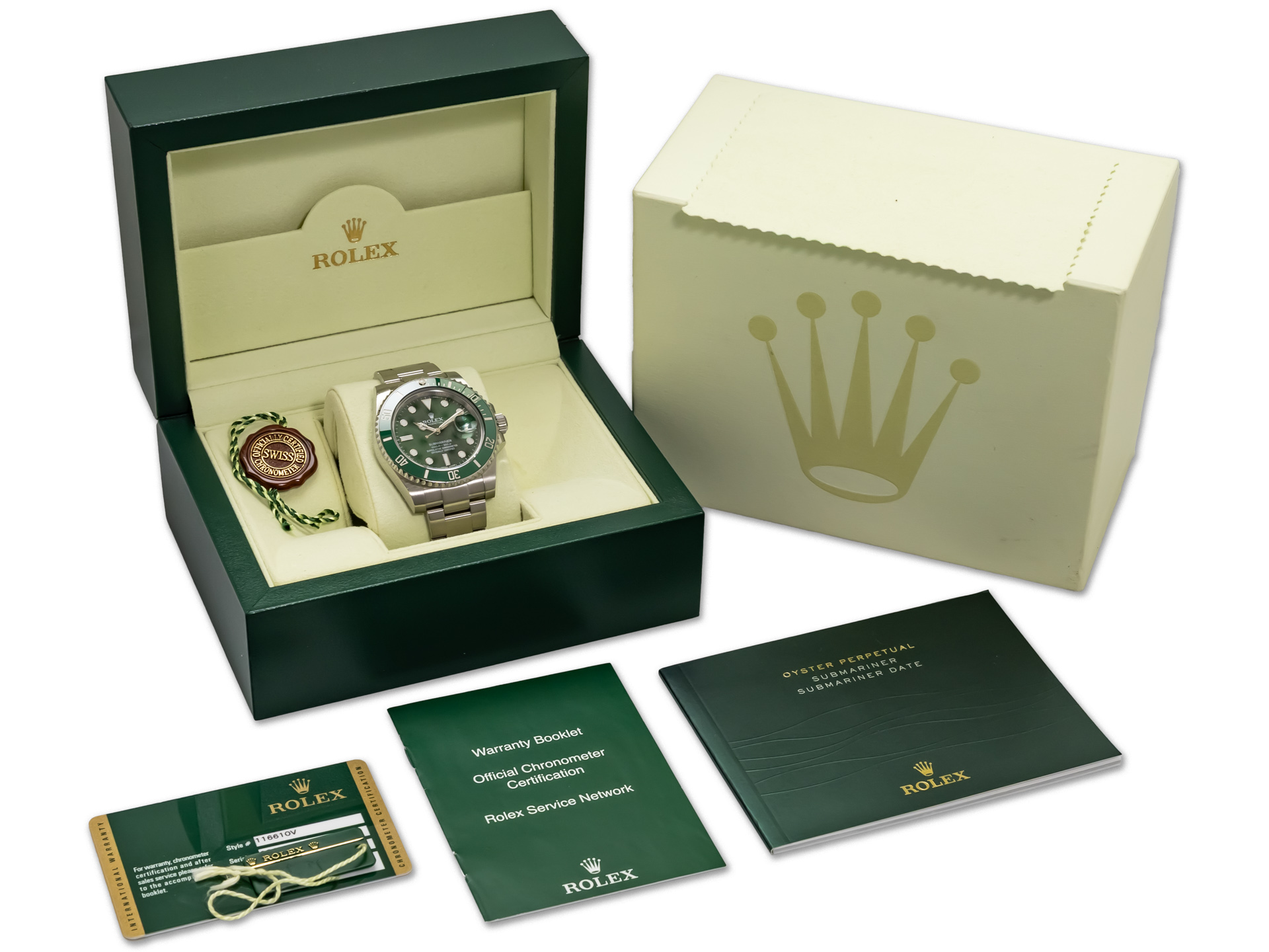 Rolex Submariner Date “Hulk” Ref. 116610LV – Stainless Steel – Green Ceramic Bezel & Green Sunburst Dial – Box & Papers – 2014 – Full Set – WEMPE