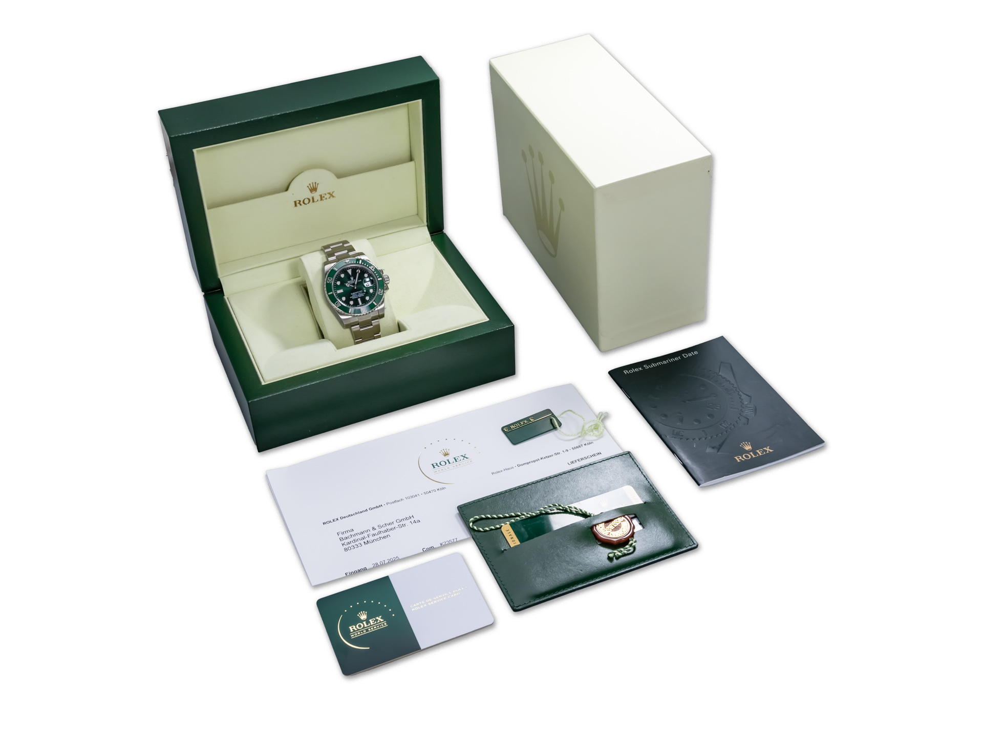 This Rolex Submariner Date “Hulk” comes complete with: