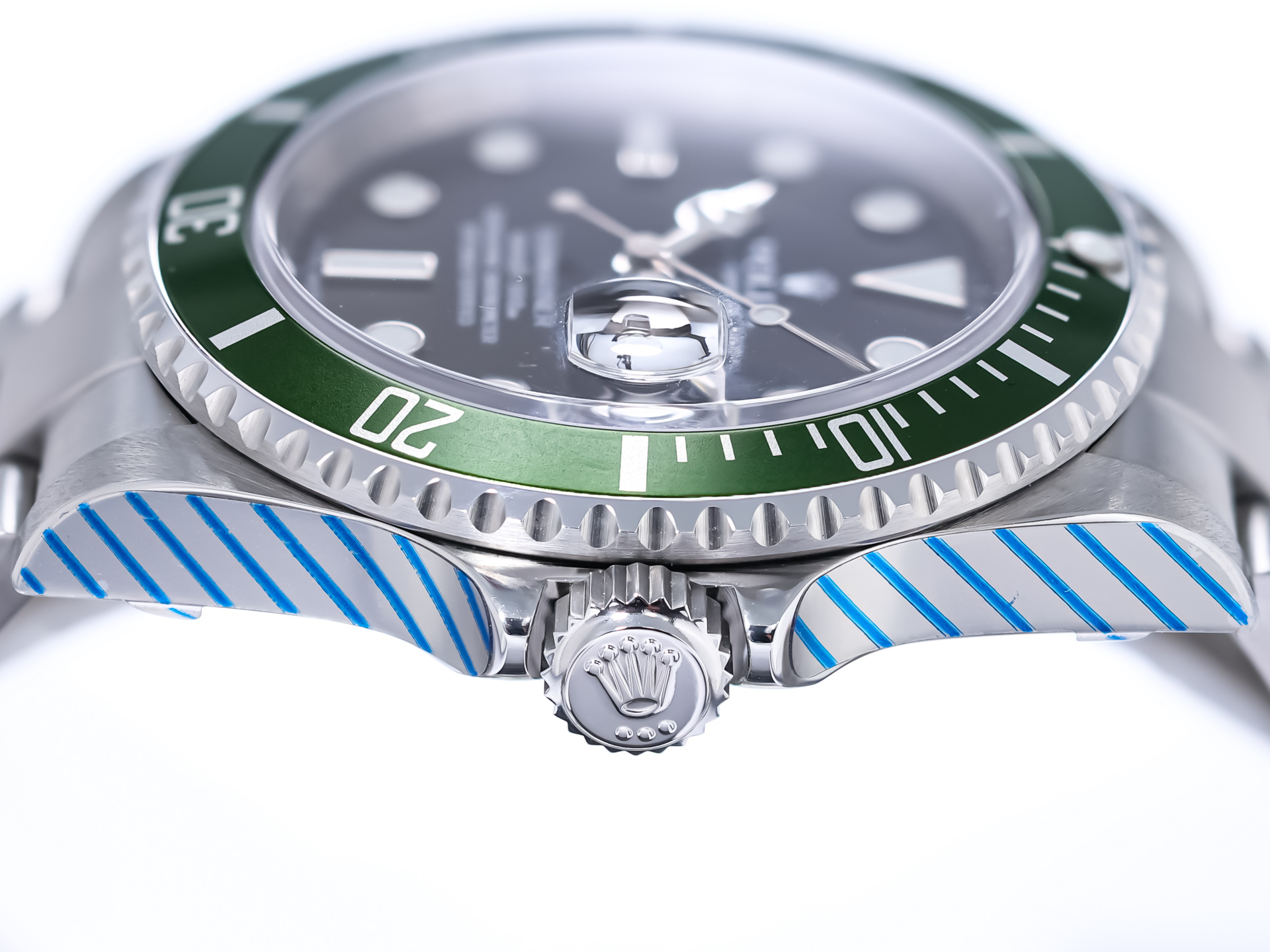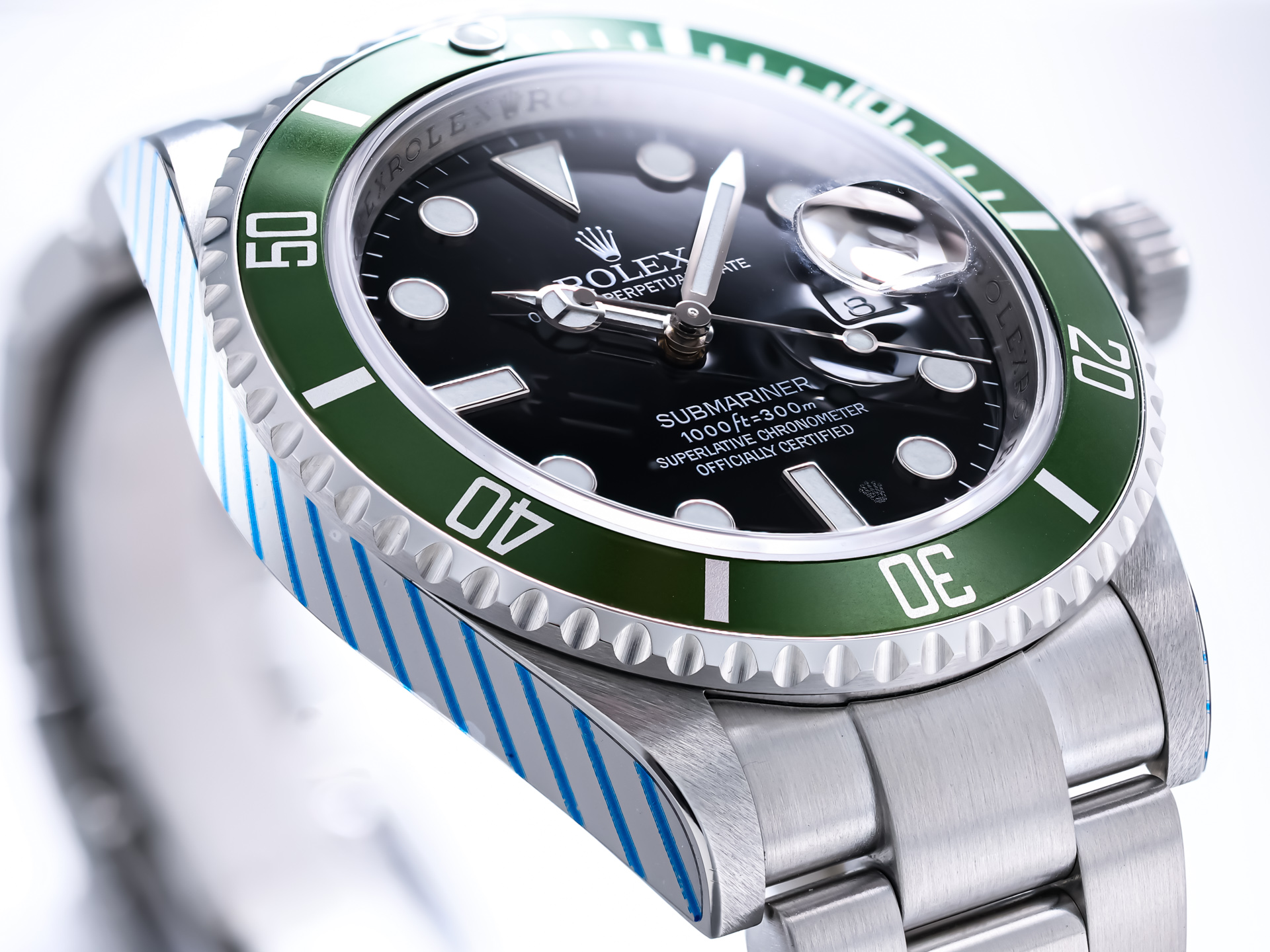 This special reference was introduced to mark the 50th anniversary of the Submariner line and immediately catches the eye with its iconic green aluminum bezel and striking maxi dial with larger indices. A model that has long achieved cult status among collectors.