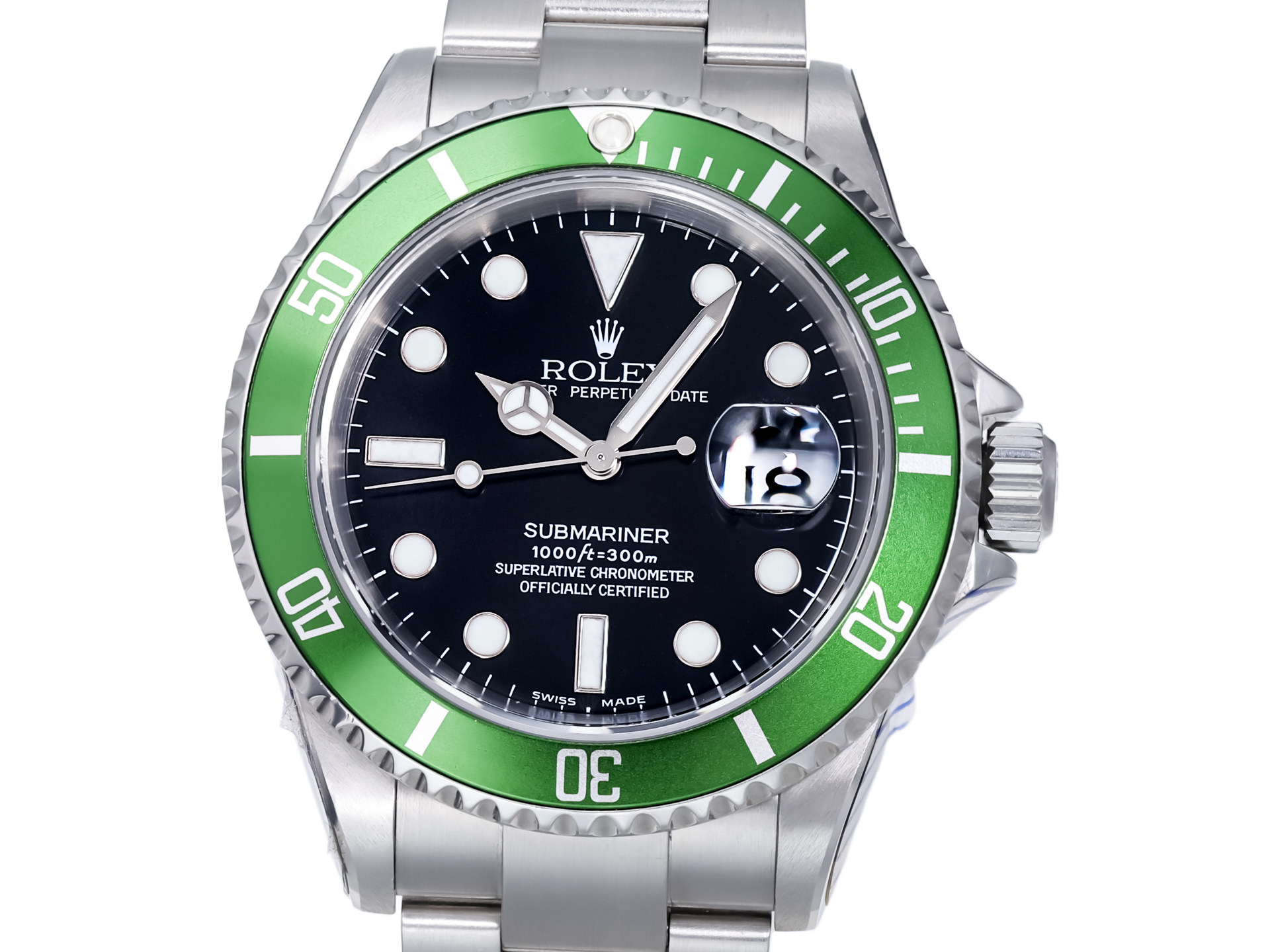 Rolex Submariner Date Ref. 16610LV “Kermit” Fat/Flat Four – Stainless Steel – Box & Papers – 2005 (F-Series) – Full Set – Excellent