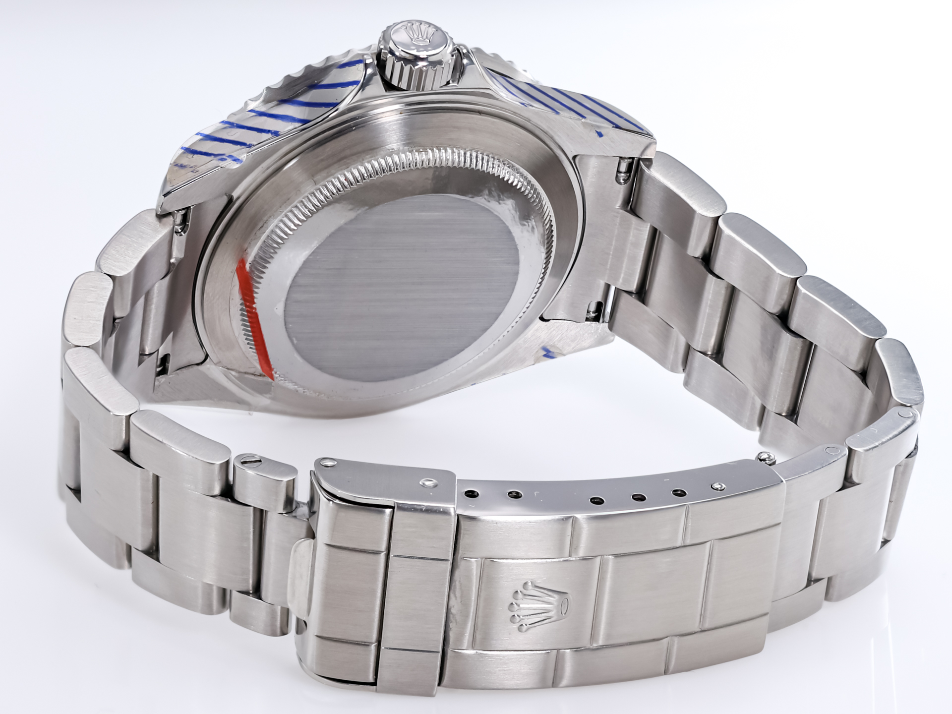 Crafted in stainless steel, the classic 40 mm Oyster case embodies Rolex’s legendary robustness and versatility. The unidirectional rotating bezel features the highly desirable “Fat/Flat Four” insert, characterized by the distinctive typography of the number 4 in “40”—a detail especially prized by enthusiasts and collectors for its relative rarity and early production significance.