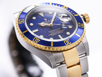 - Chronomerter tagCombining two-tone refinement, a beautiful blue tritium dial, and a recent service, this 1993 Submariner 16613 is a standout example—perfect for collectors seeking a vintage-era Submariner with unique dial character and full-set provenance.