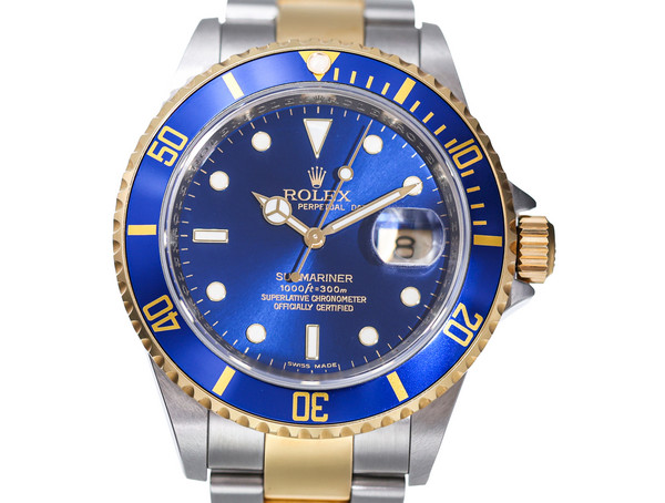 ROLEX SUBMARINER DATE Ref 16613 18k Yellow Gold Steel Box Papers Bj-2009 Excellent