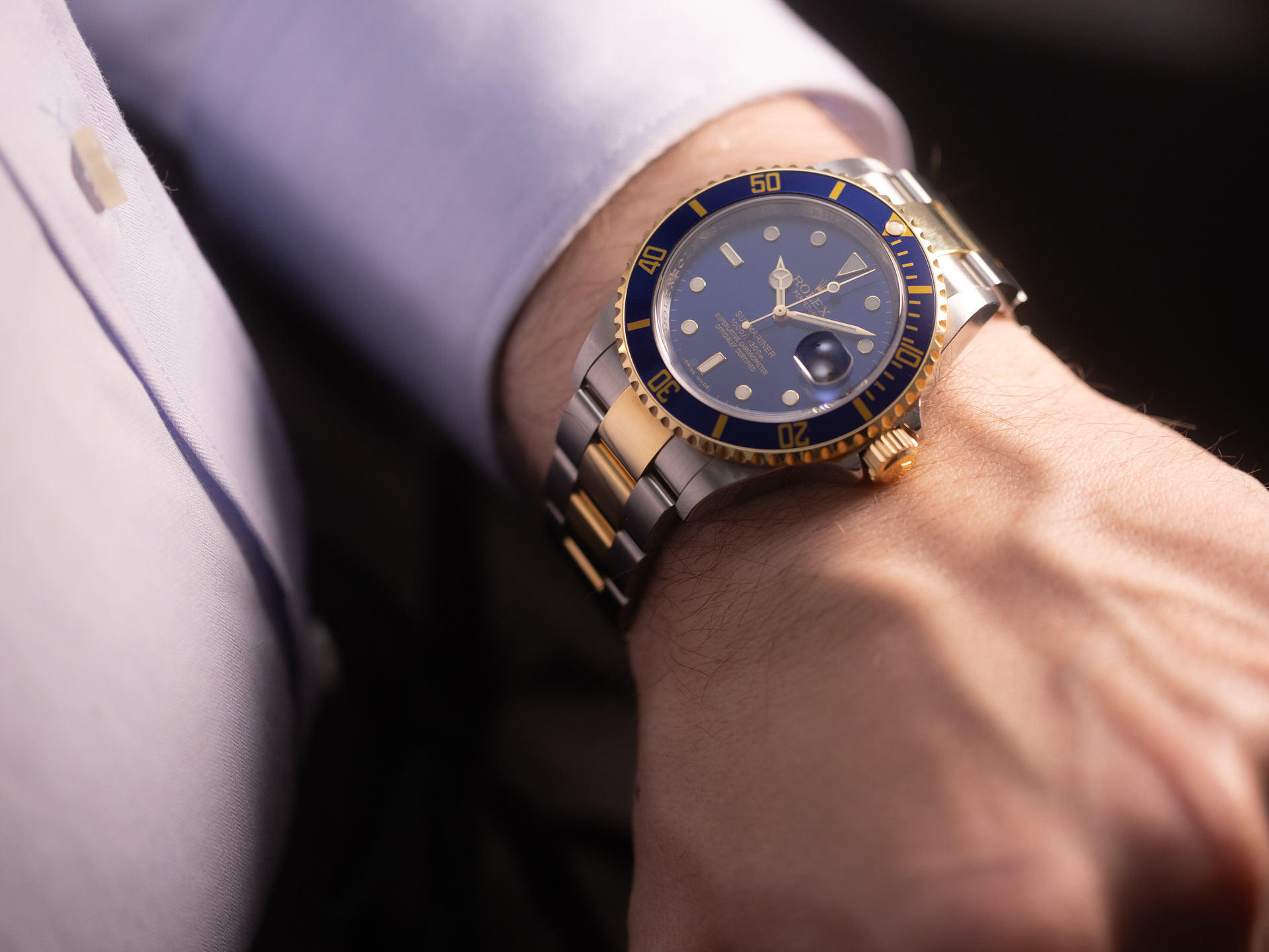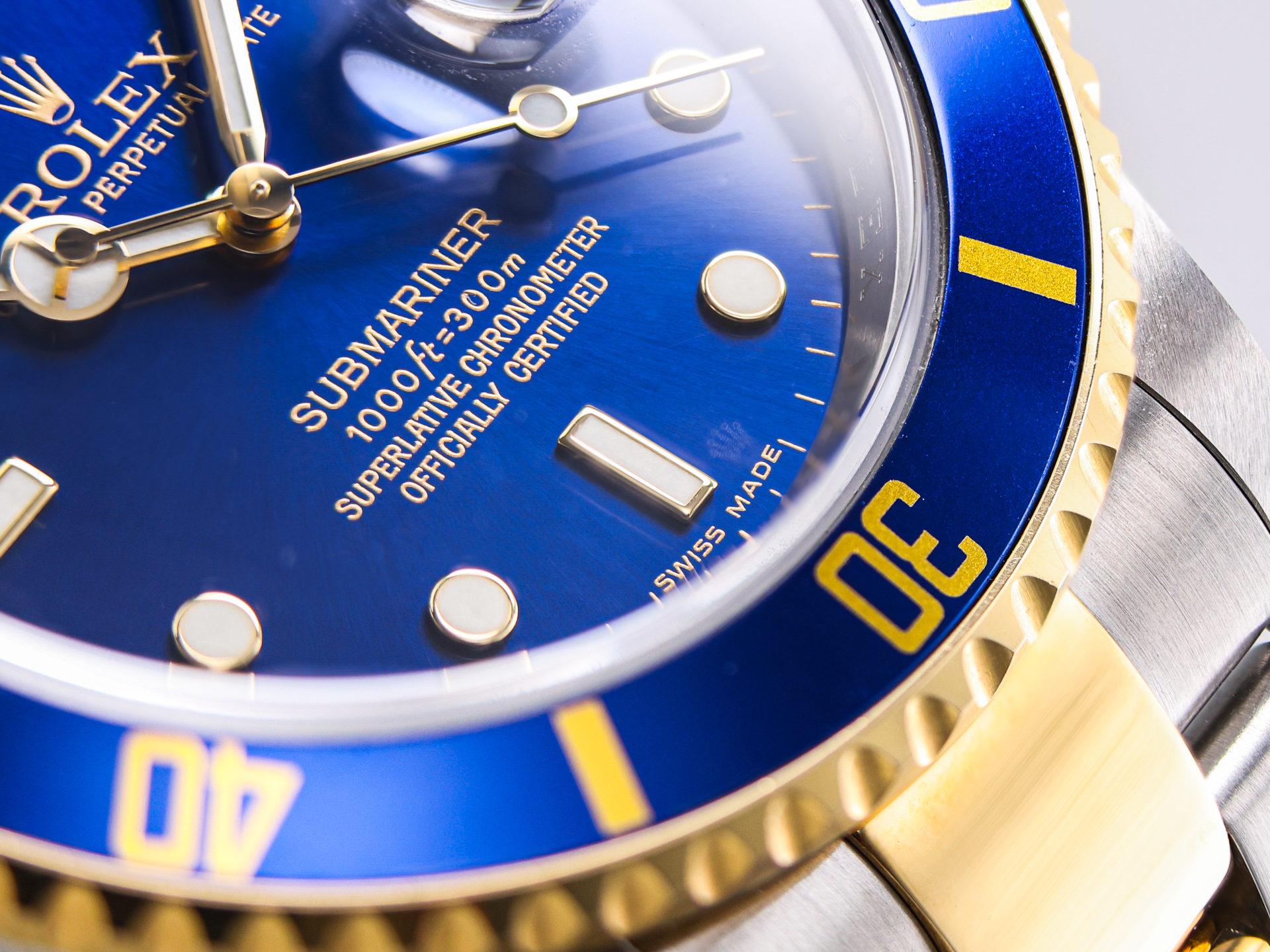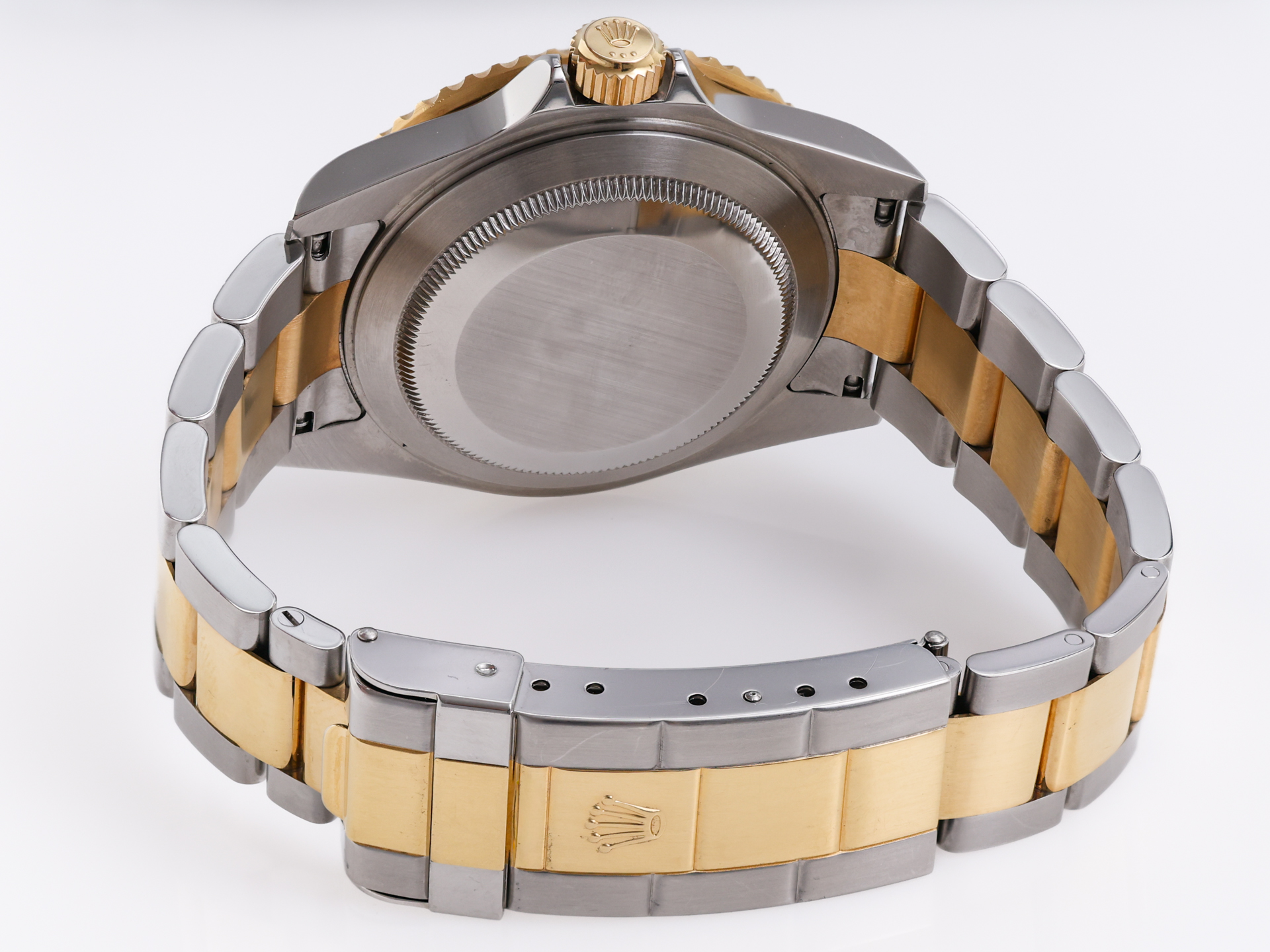 The two-tone Oyster bracelet—with its solid 18k yellow gold center links and two-tone Oysterlock clasp—provides both comfort and enduring elegance, completing the classic 16613 look.