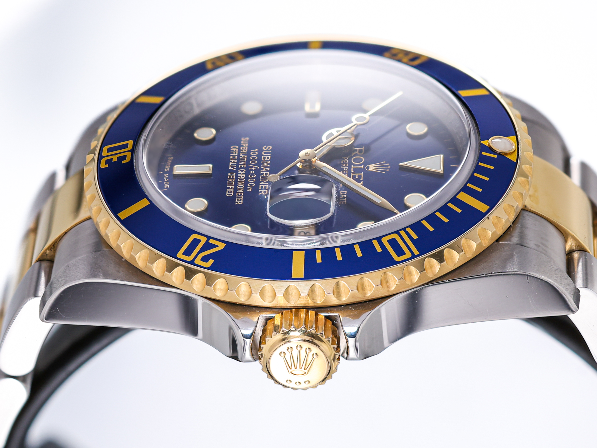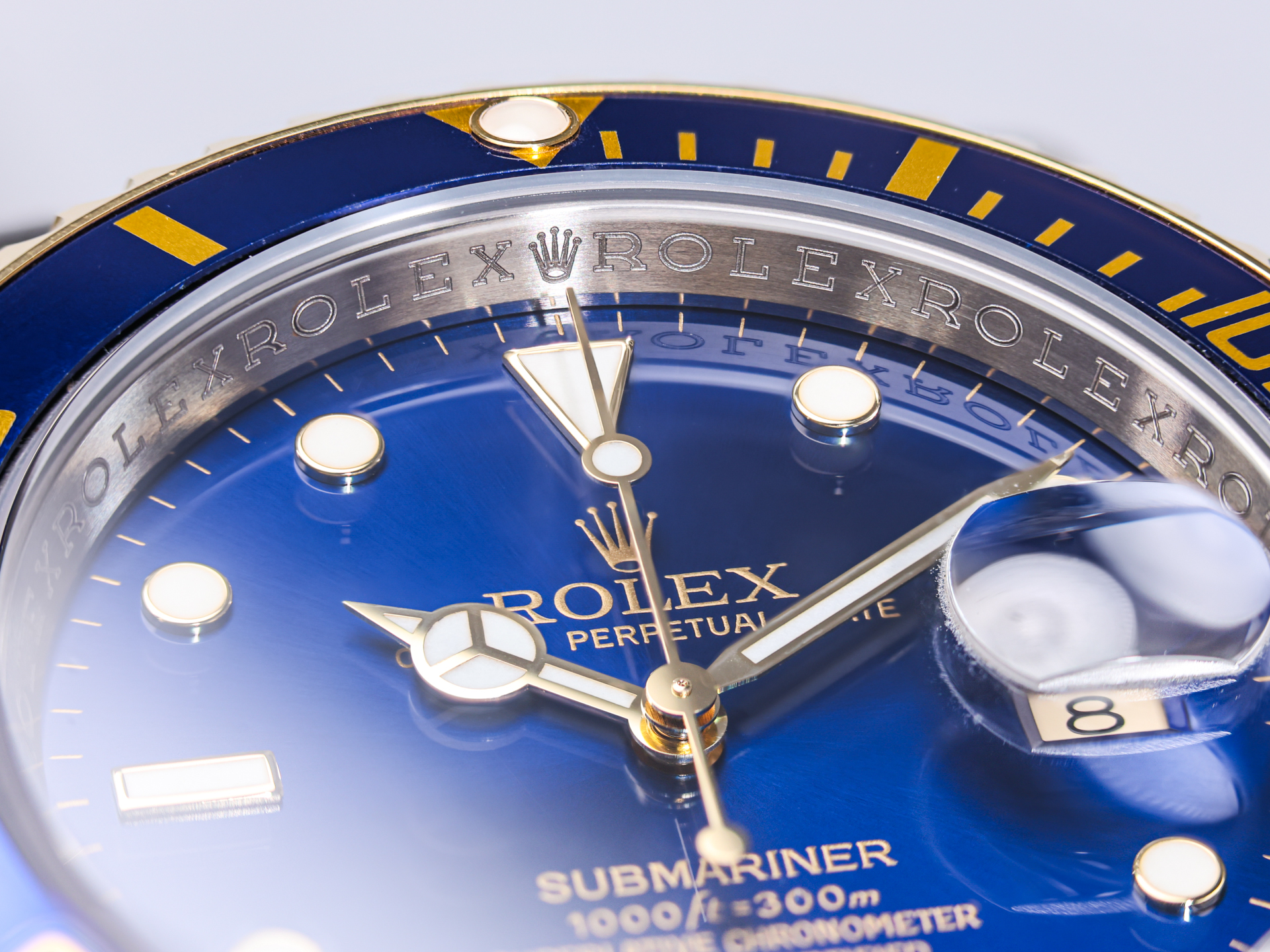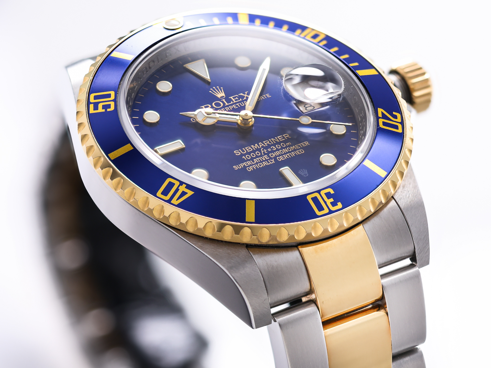 The two-tone Oyster bracelet—with its solid 18k yellow gold center links and two-tone Oysterlock clasp—provides both comfort and enduring elegance, completing the classic 16613 look.