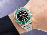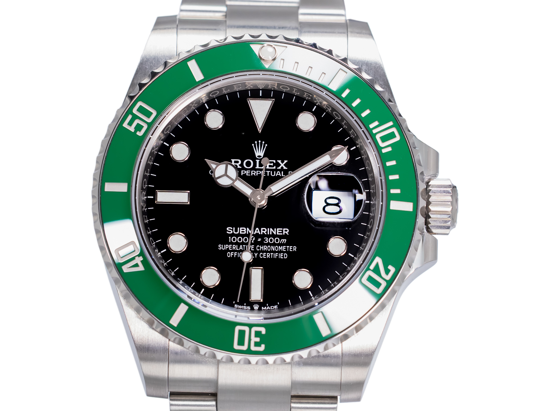 We are pleased to present this Rolex Submariner Date "Starbucks", reference 126610LV, in Oystersteel — featuring the striking green Cerachrom bezel and classic black dial combination.