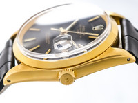 ROLEX Vintage DATE 34mm Ref 1500 18k Yellow Gold Black Tritu8m Dial Gold Buckle Bj-1973 Excellent