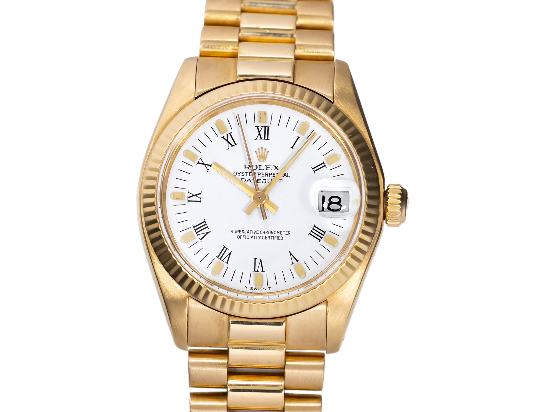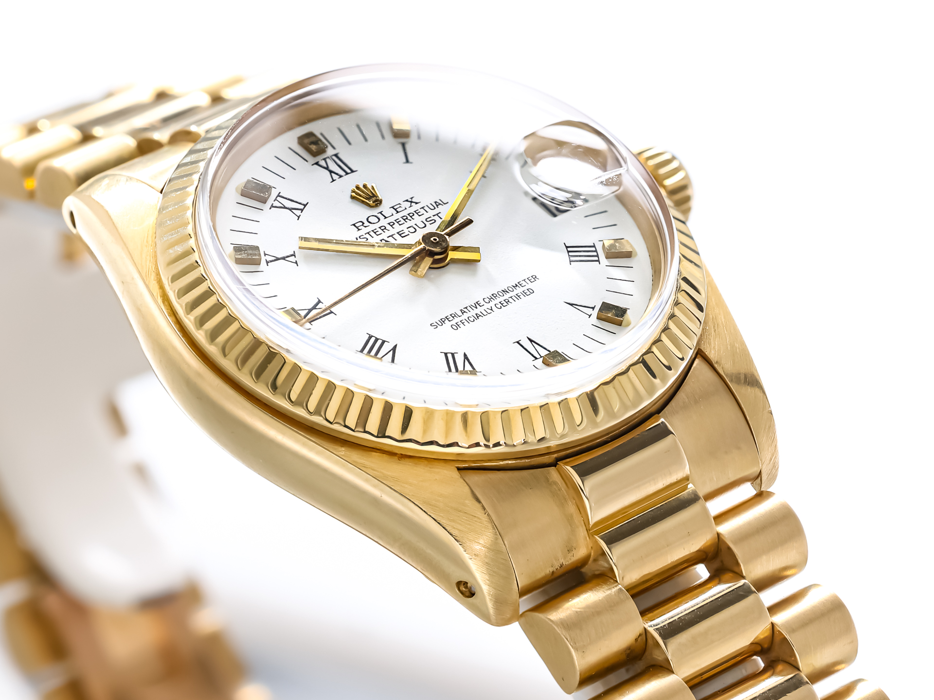 ROLEX Vintage DATEJUST MEDIUM Ref 6827 18k Yellow Gold President Bracelet Bj-1978