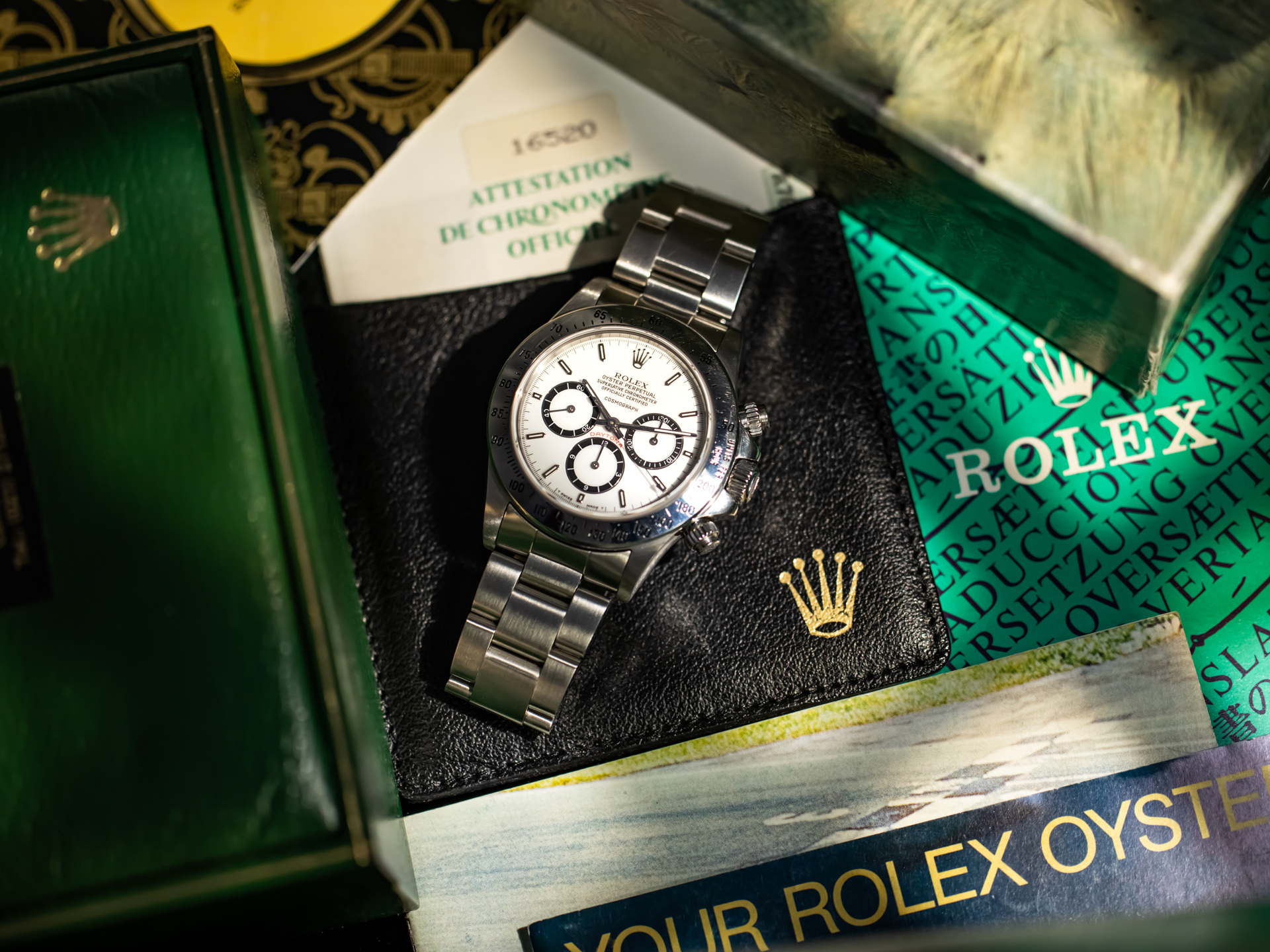 Rolex Daytona Cosmograph Ref. 16520 "Porcelain Floating Dial" – Tritium – R-Series — No.782xxx – Full Set – Box & Papers – 1989
