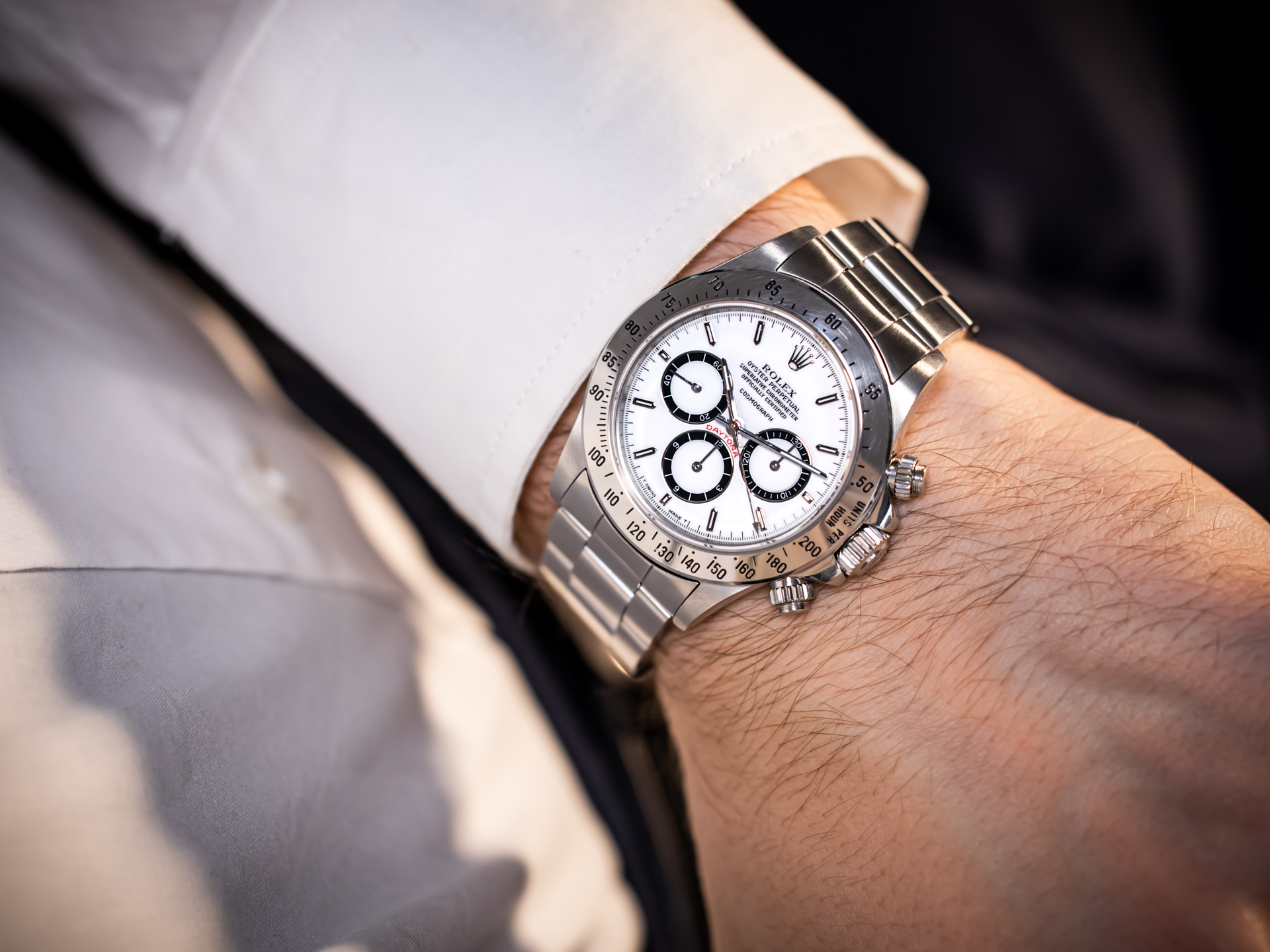 A true connoisseur’s Daytona, this R-series 16520 "Porcelain" is a time capsule from the transitional era of Rolex chronographs and a must-have for serious collectors of the brand.