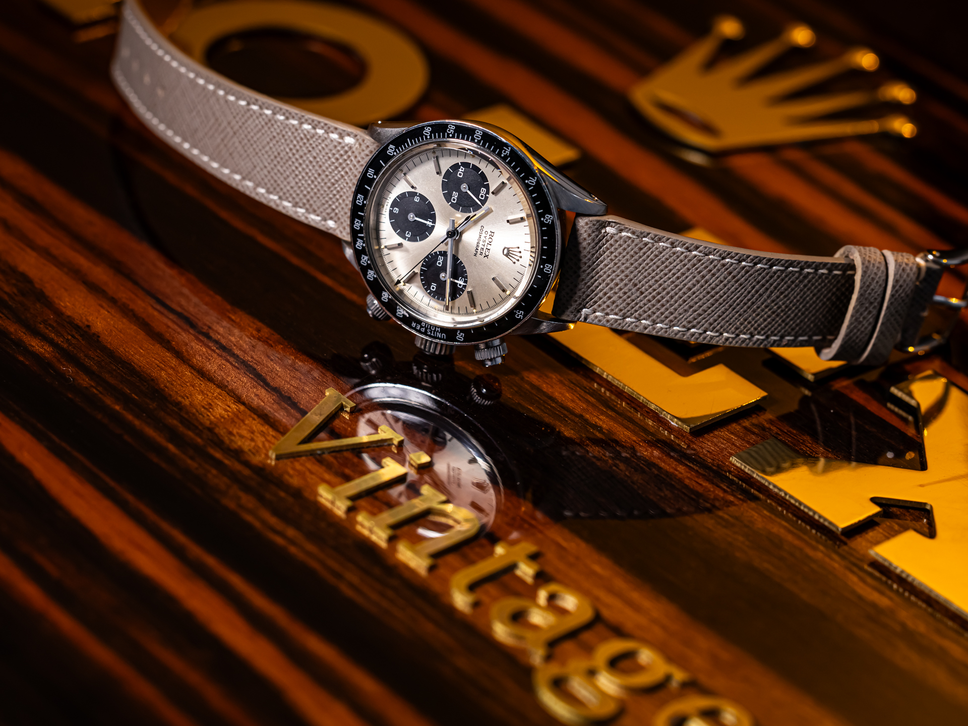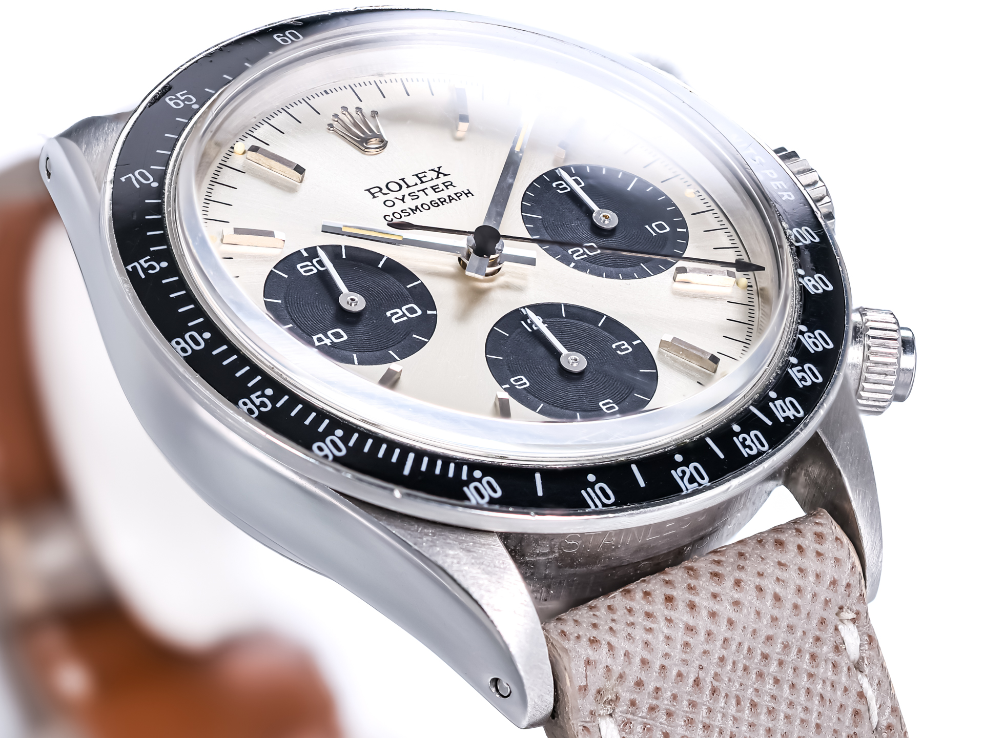 “Few vintage chronographs enjoy the legendary status of the Daytona 6263. In its rare ‘Big Eyes’ configuration and accompanied by its original box, this example represents a particularly desirable and charismatic piece of Rolex history.”