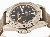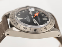 A true icon of tool-watch history, this Rolex Explorer II from 1977 combines rugged functionality with timeless design. Crafted in stainless steel and paired with a high-quality leather strap featuring a Rolex pin buckle, this watch offers a refined yet adventurous character that collectors and enthusiasts appreciate.
