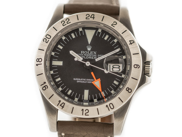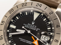 The early reference models quickly became known for their bold orange 24-hour hand, earning the nickname “Freccione” among collectors. Over time, the Explorer II evolved into one of Rolex’s most respected professional tool watches, prized for its legibility, durability, and understated aesthetics.