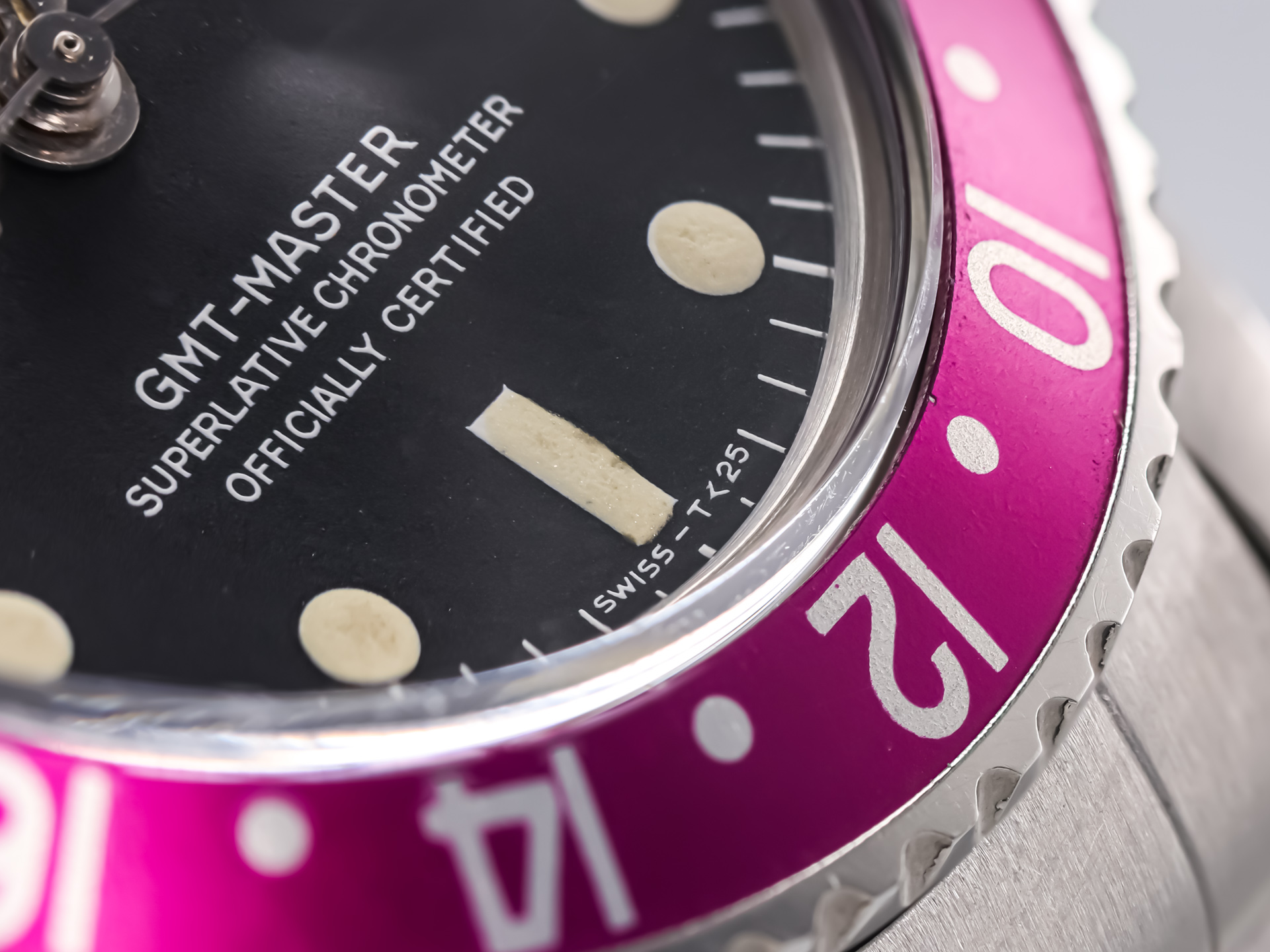 ROLEX Vintage GMT-MASTER PEPSI FUCHSIA Long-E Tritium Dial Stainless Steel Bj-1967