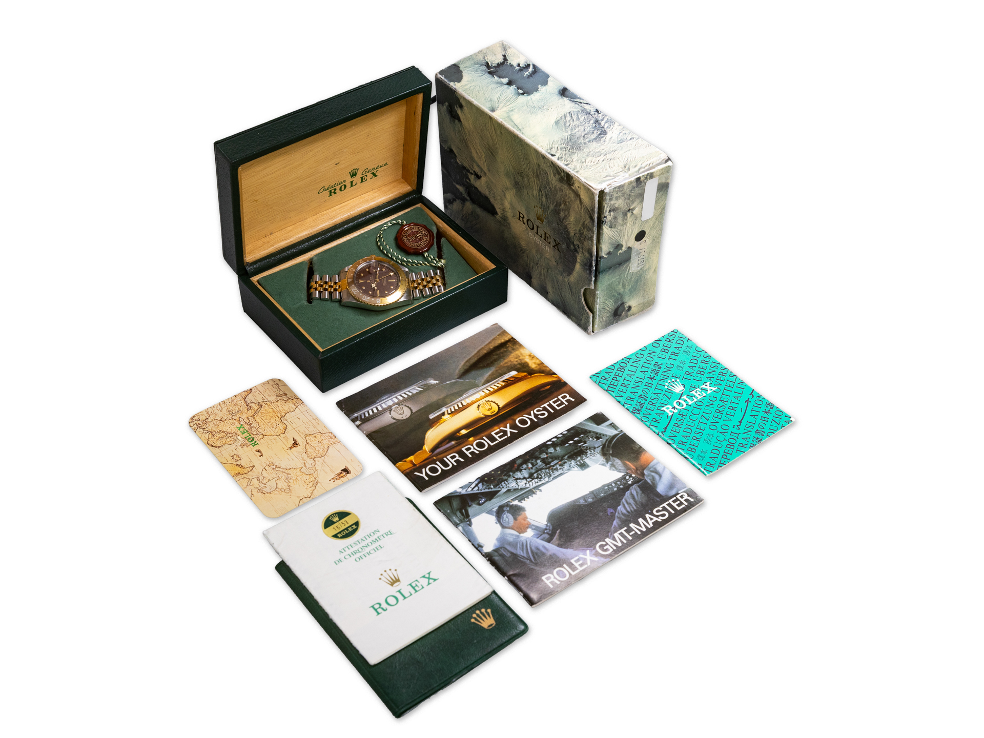 This Rolex Vintage GMT-Master Ref. 16753 is offered with: