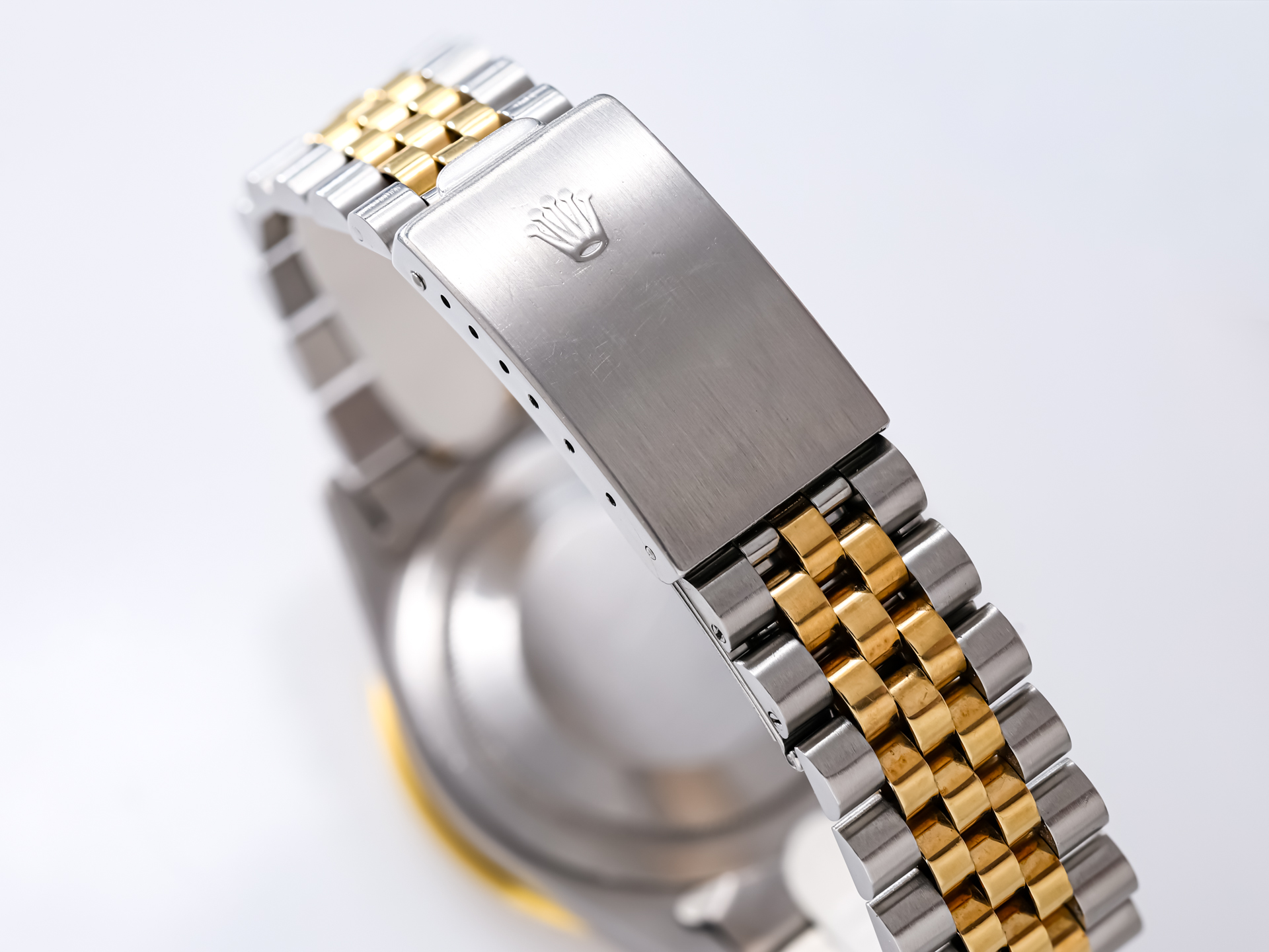 The 40mm Oyster case is complemented by the elegant two-tone Jubilee bracelet, offering both comfort and unmistakable vintage character. The warm contrast between steel and yellow gold gives the watch a refined yet sporty presence on the wrist.