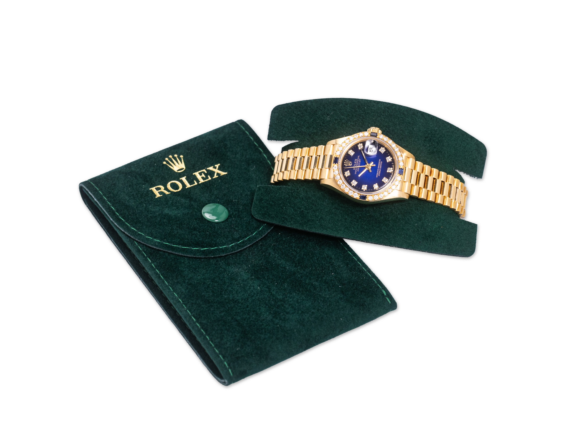 ROLEX Vintage LADY DATEJUST 26 Ref 69088 18ct Yellow Gold Original Diamond Sapphire Bezel Dial Box Bj-1989 Excellent