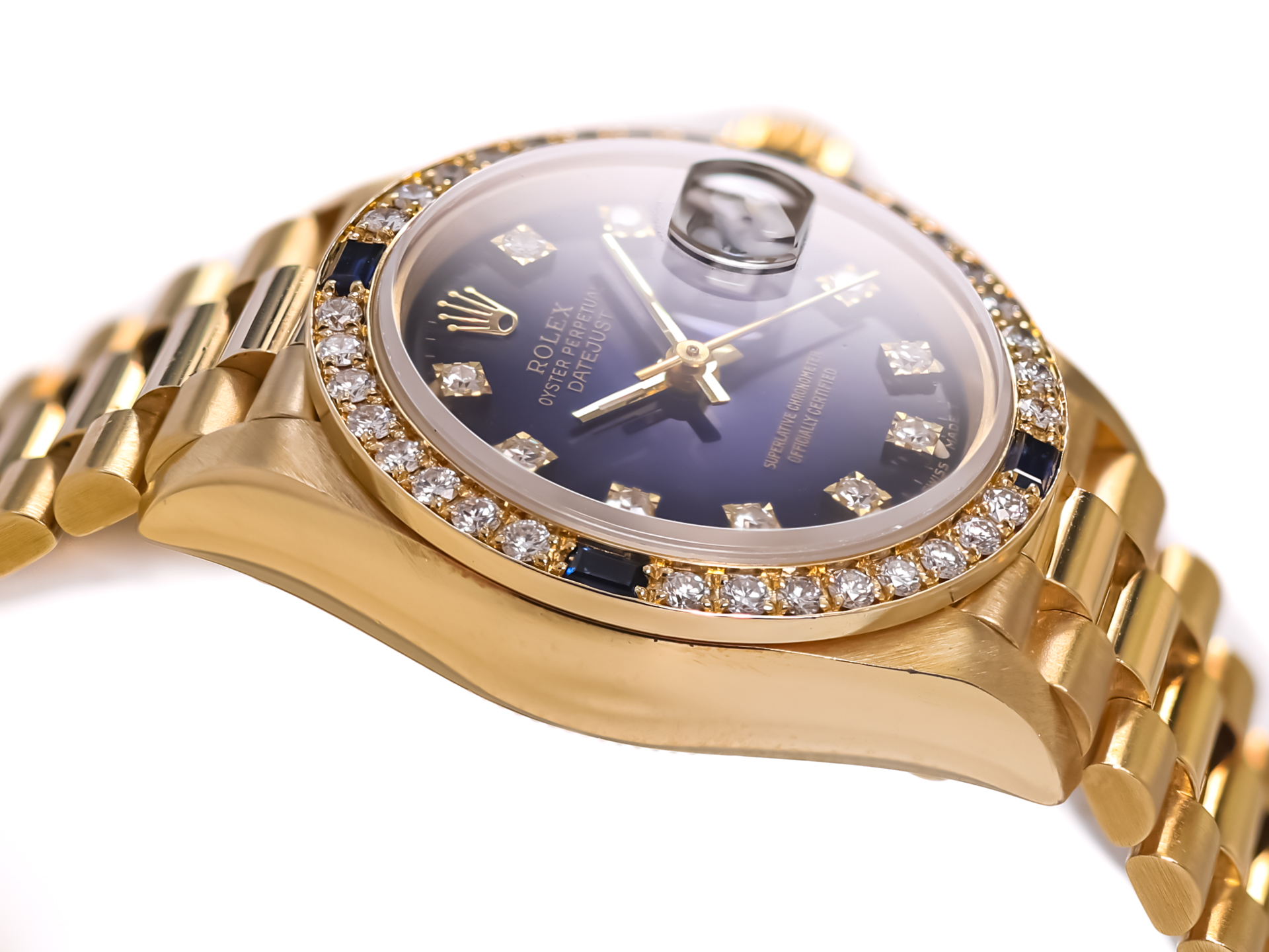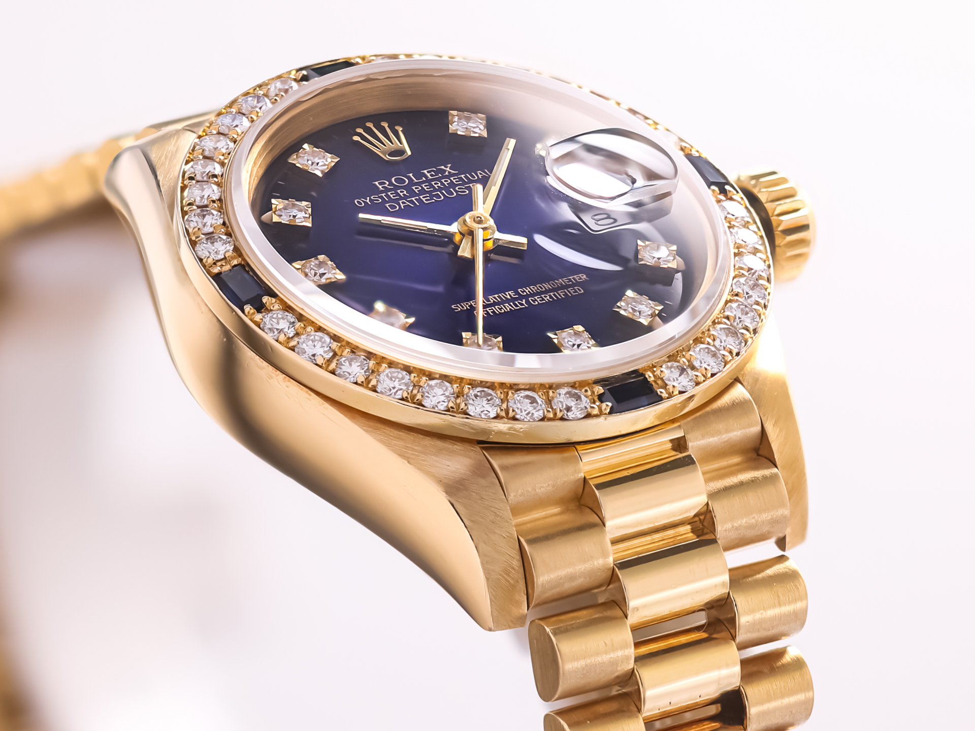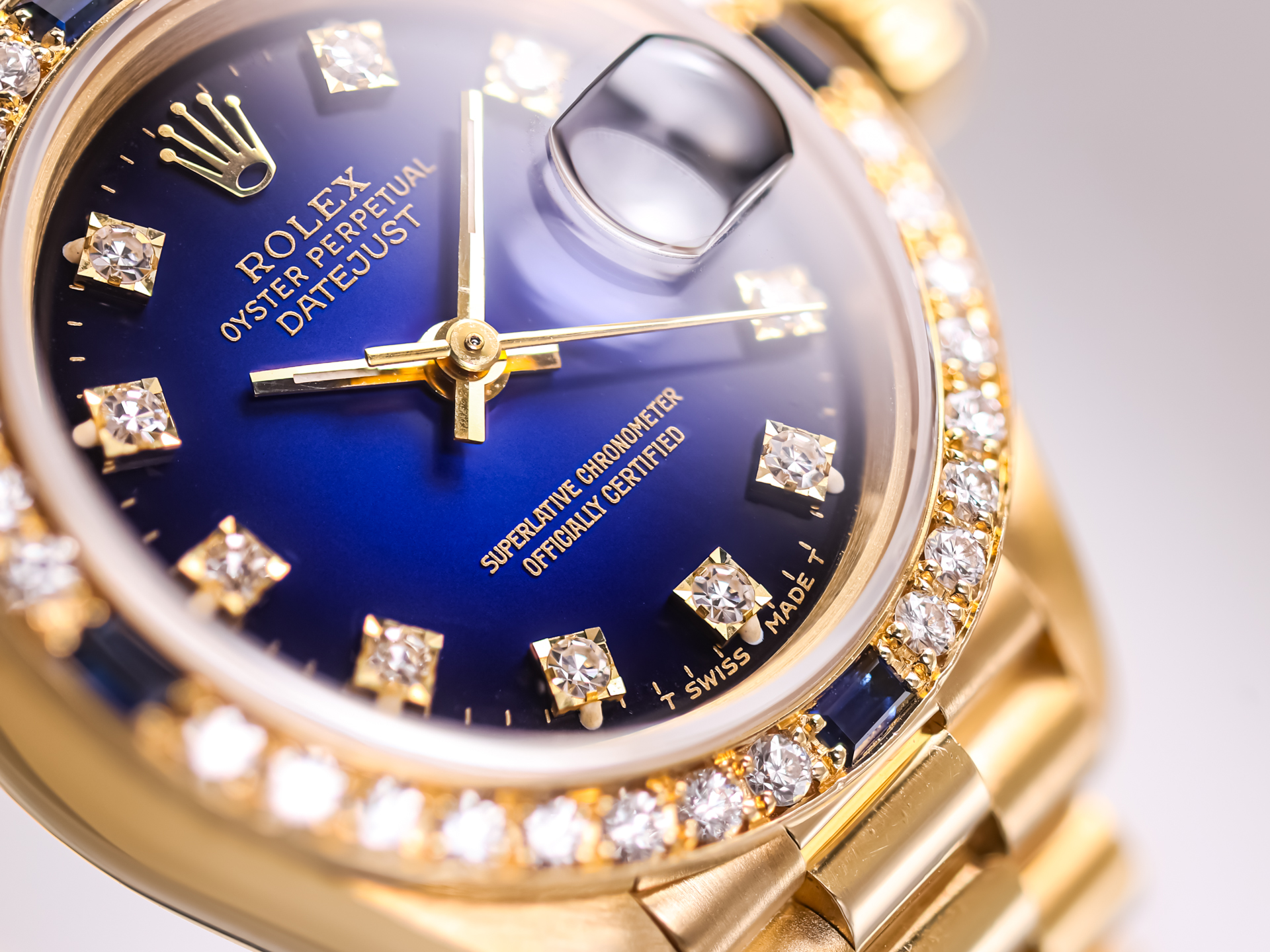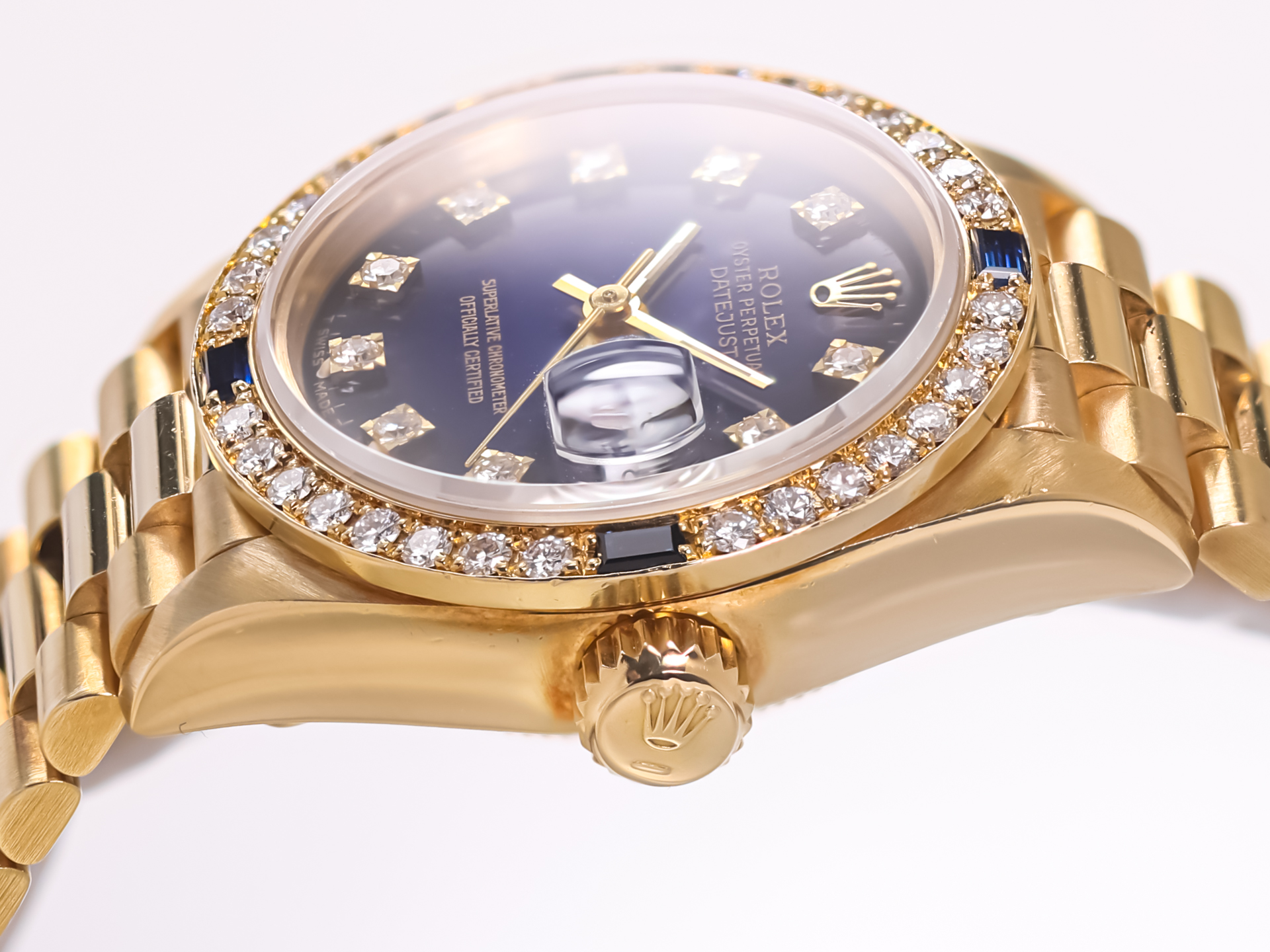 “The Ref. 69088 is a masterclass in gem-set elegance; with its rare blue vignette dial and sapphire-accented bezel, it offers a level of exclusivity and visual drama that stands as a testament to the golden age of Rolex design.”