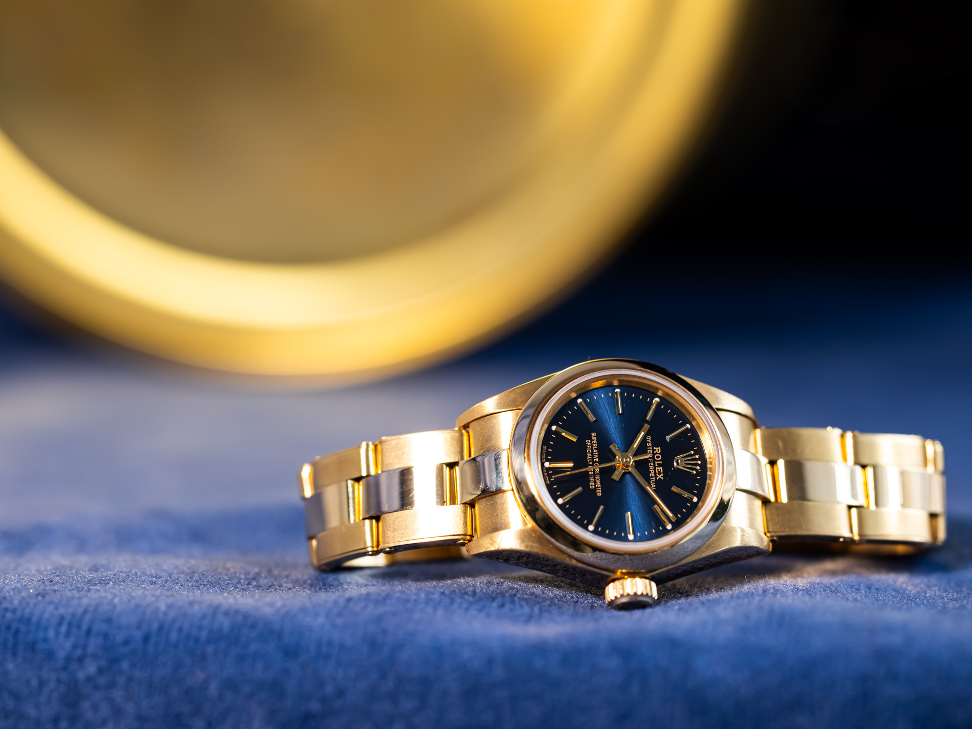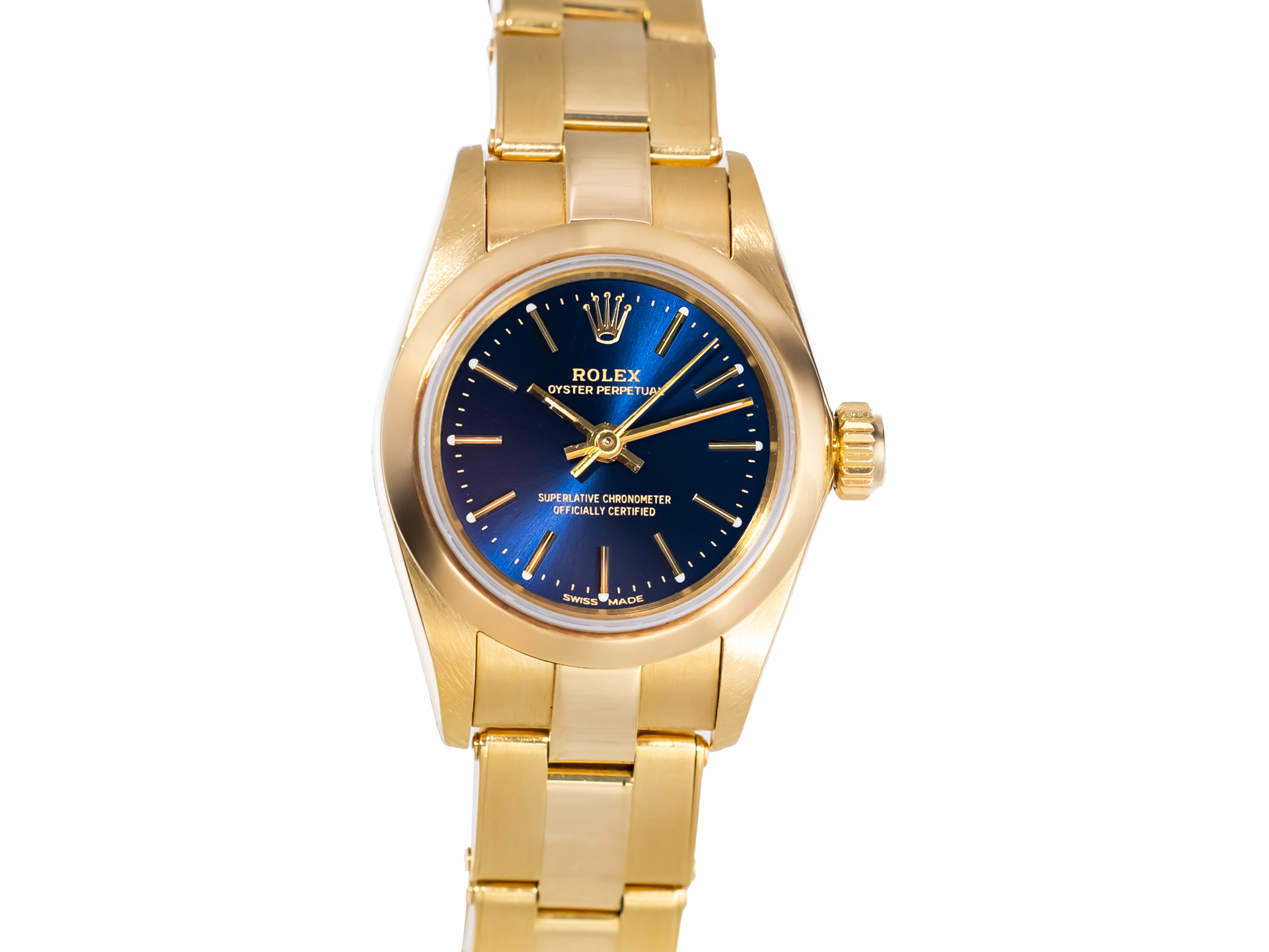 Rolex Oyster Lady Ref. 67188 – 18k Yellow Gold – Blue Dial – Oyster Bracelet – 1992 – Vintage Example