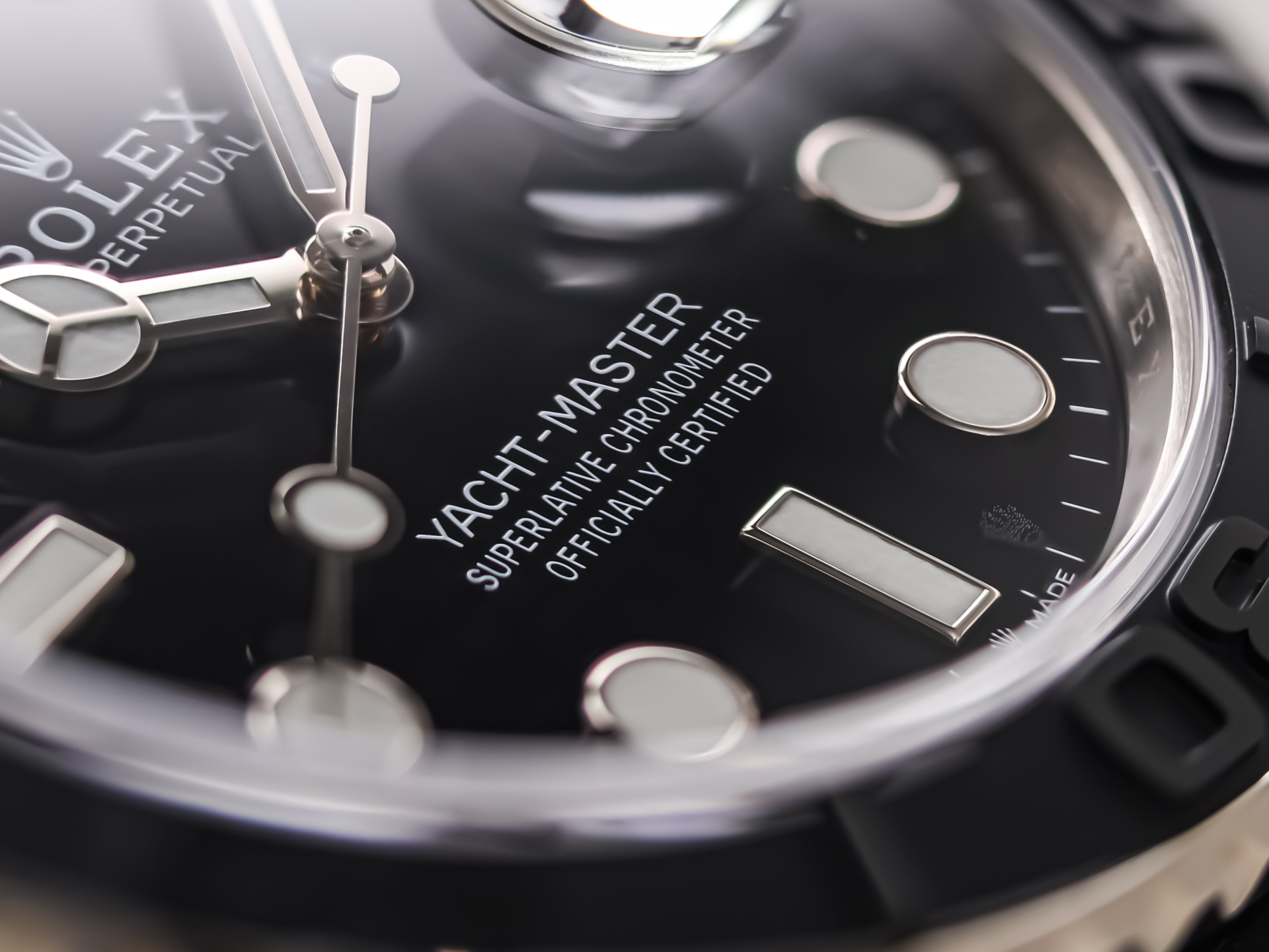 The 42 mm case is perfectly complemented by the matt black Cerachrom bezel with raised engraved numerals. The deep black dial offers excellent readability - both day and night, thanks to Chromalight luminous material. The comfortable Oysterflex bracelet combines the robustness of a metal bracelet with the comfort of an elastomer strap - including an 18K white gold folding clasp with Easylink extension system.