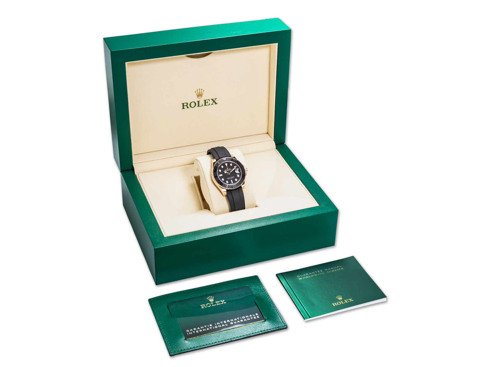 Presented in excellent condition, this 2023 example has been maintained with exceptional care, displaying only the most minimal signs of gentle handling. Complete with its original presentation box, warranty card, and accompanying literature, it represents an outstanding opportunity to acquire a contemporary Everose Yacht-Master in a highly desirable size and configuration.
