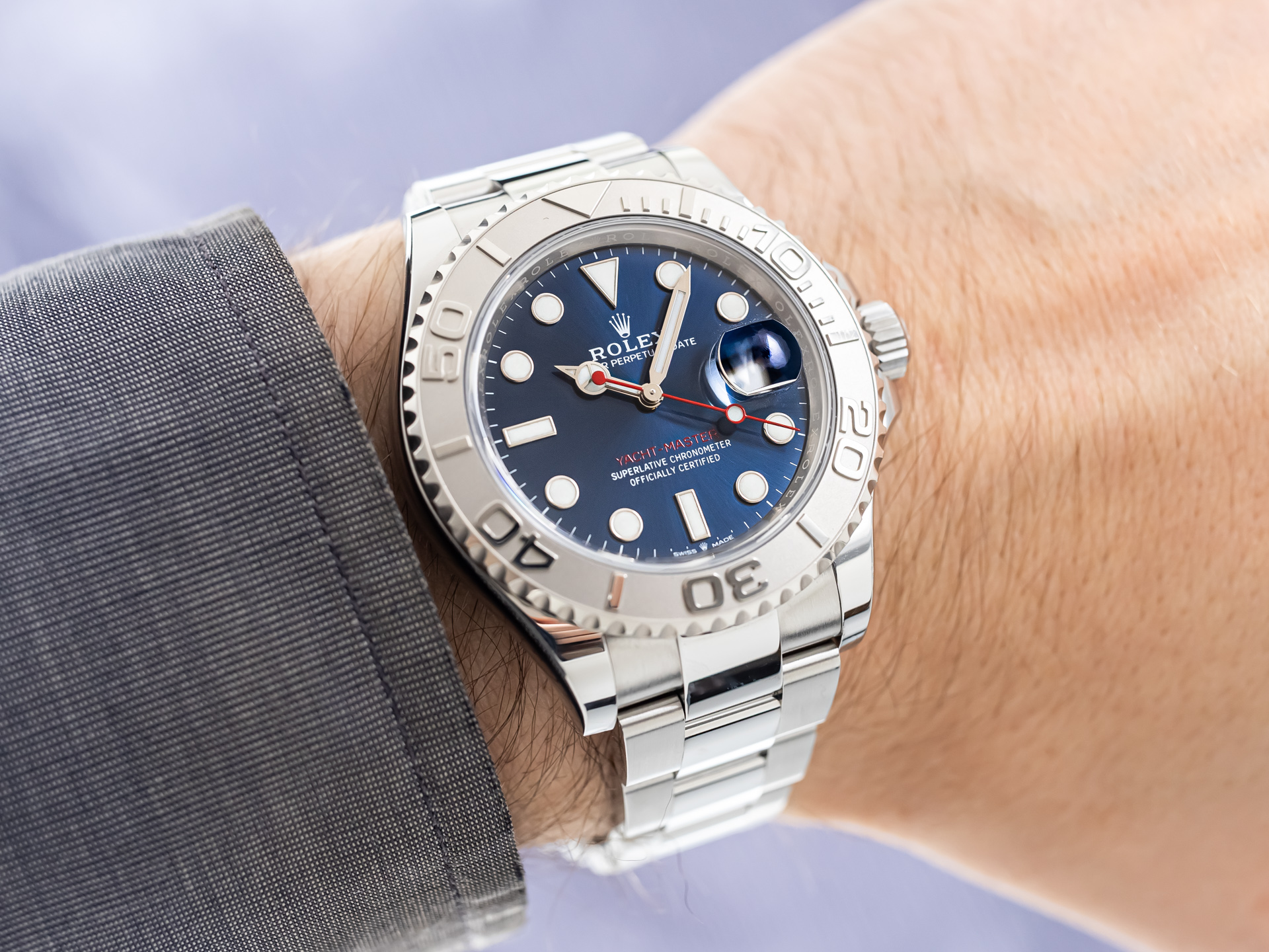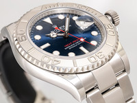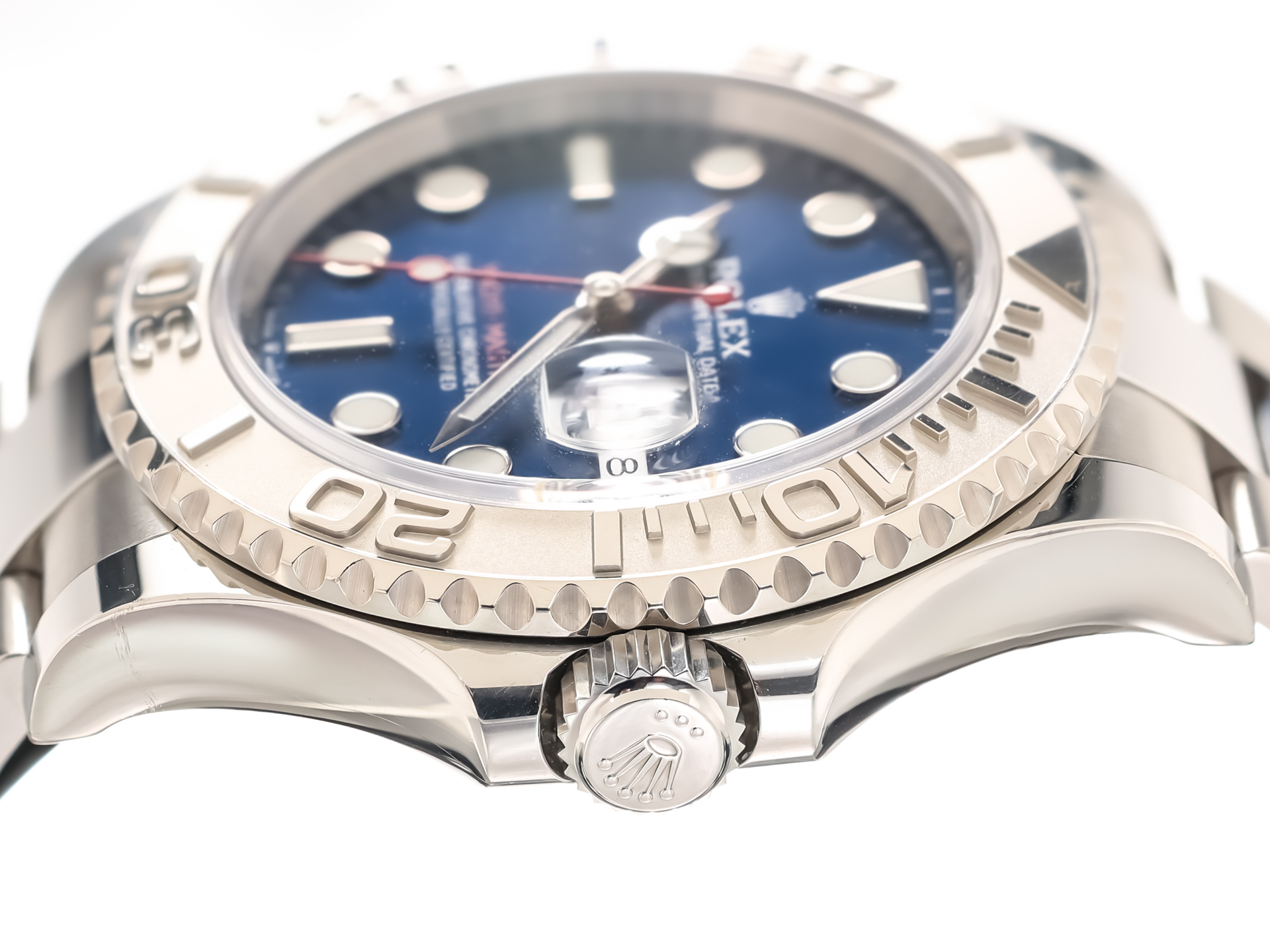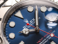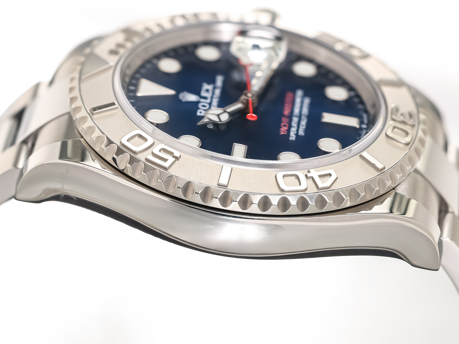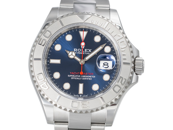 The Yacht-Master 40 is celebrated for its refined nautical aesthetic and elevated finishing. The platinum bezel, featuring raised polished numerals against a sandblasted background, contrasts beautifully with the luminous dial, which includes a red seconds hand and the iconic "Yacht-Master“ inscription.