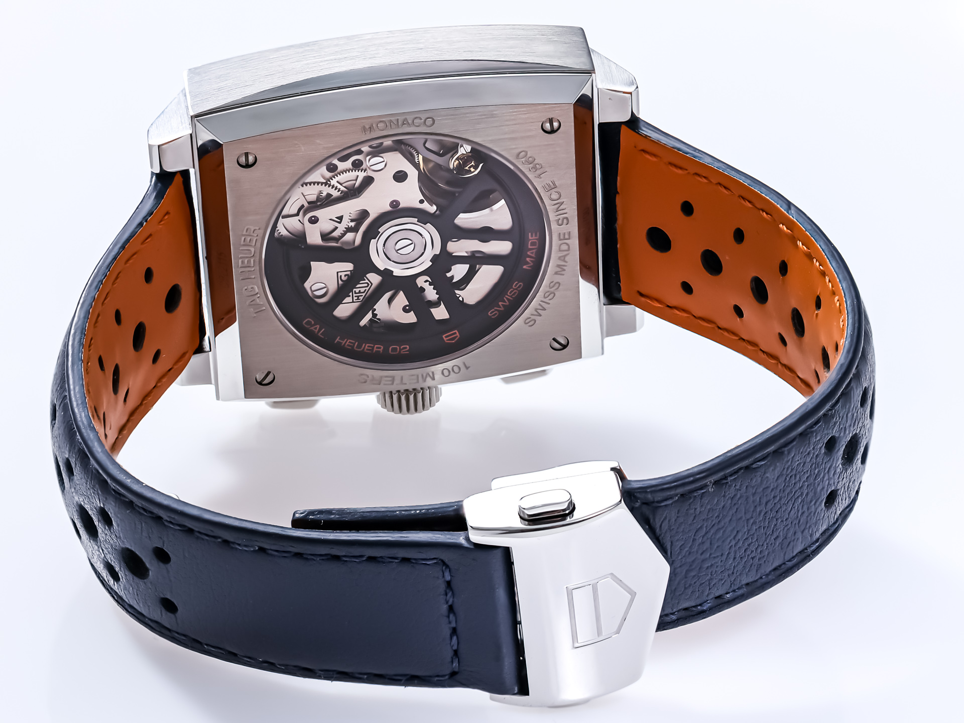 Made from stainless steel, the unmistakable 39 mm square Monaco case retains the bold, avant-garde design that has defined the model since its debut in 1969. The polished and brushed surfaces highlight the case’s architectural lines, while the left-side crown remains a signature detail rooted in the Monaco’s racing heritage.