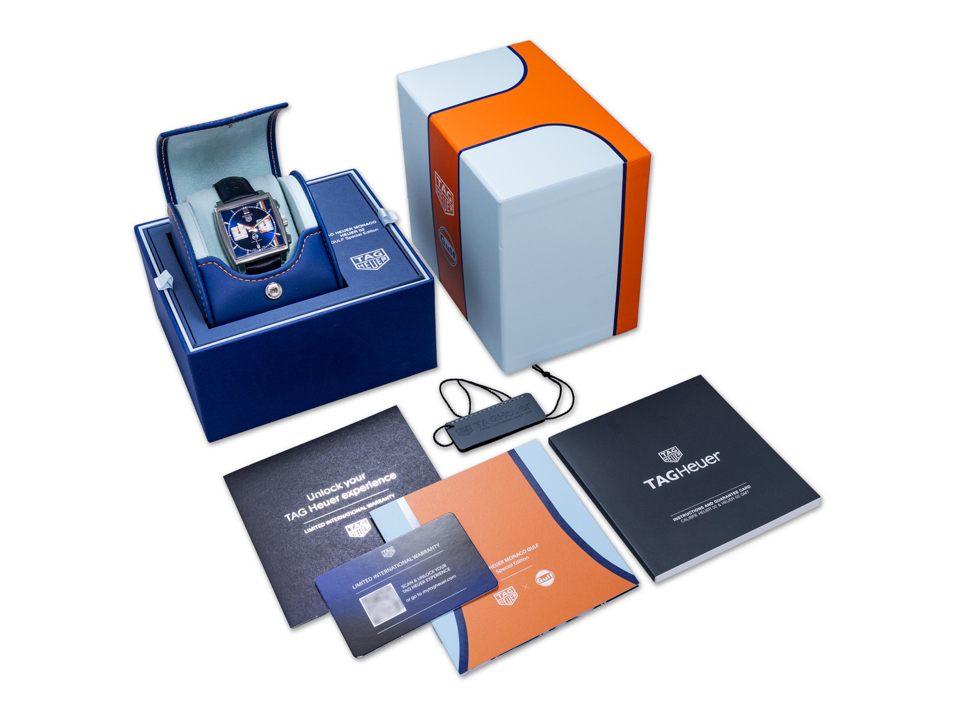 This TAG Heuer Monaco Gulf Edition is offered with: