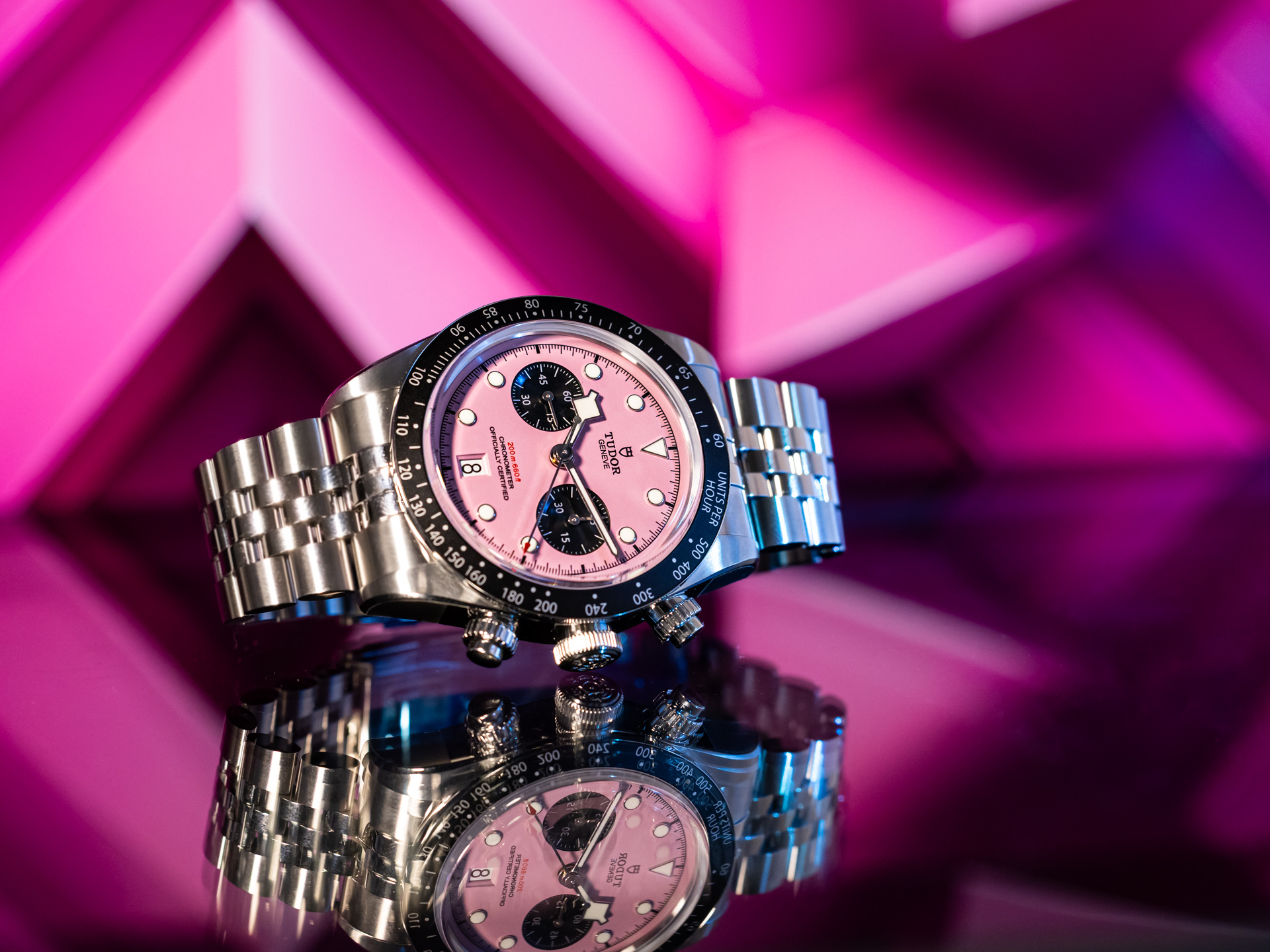 “The Black Bay Chrono Pink Dial is a bold modern icon — blending Tudor’s tool-watch heritage with a confident, contemporary edge.”