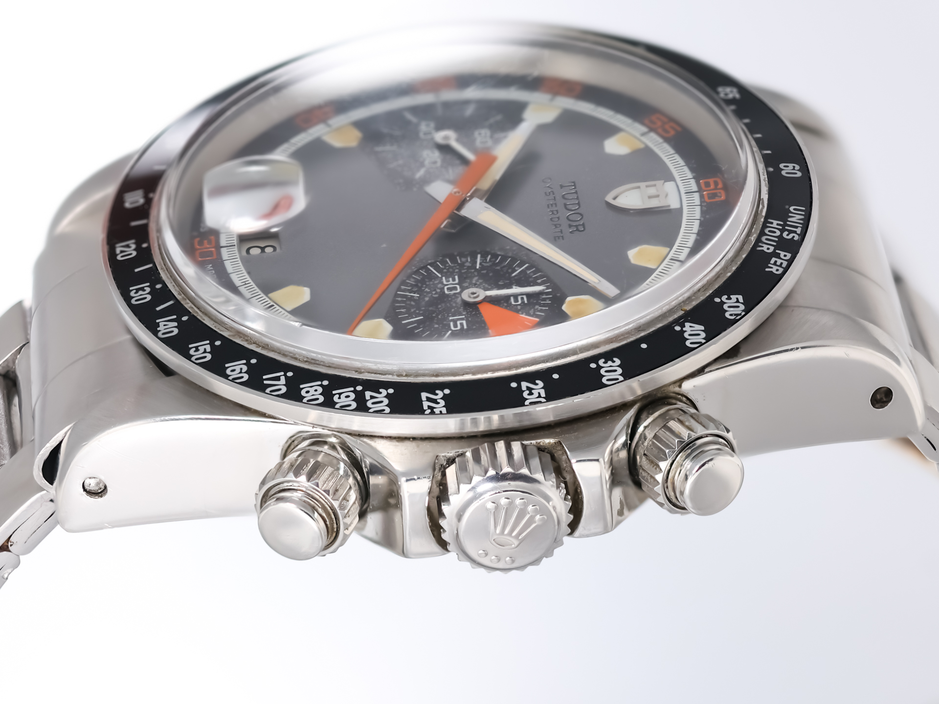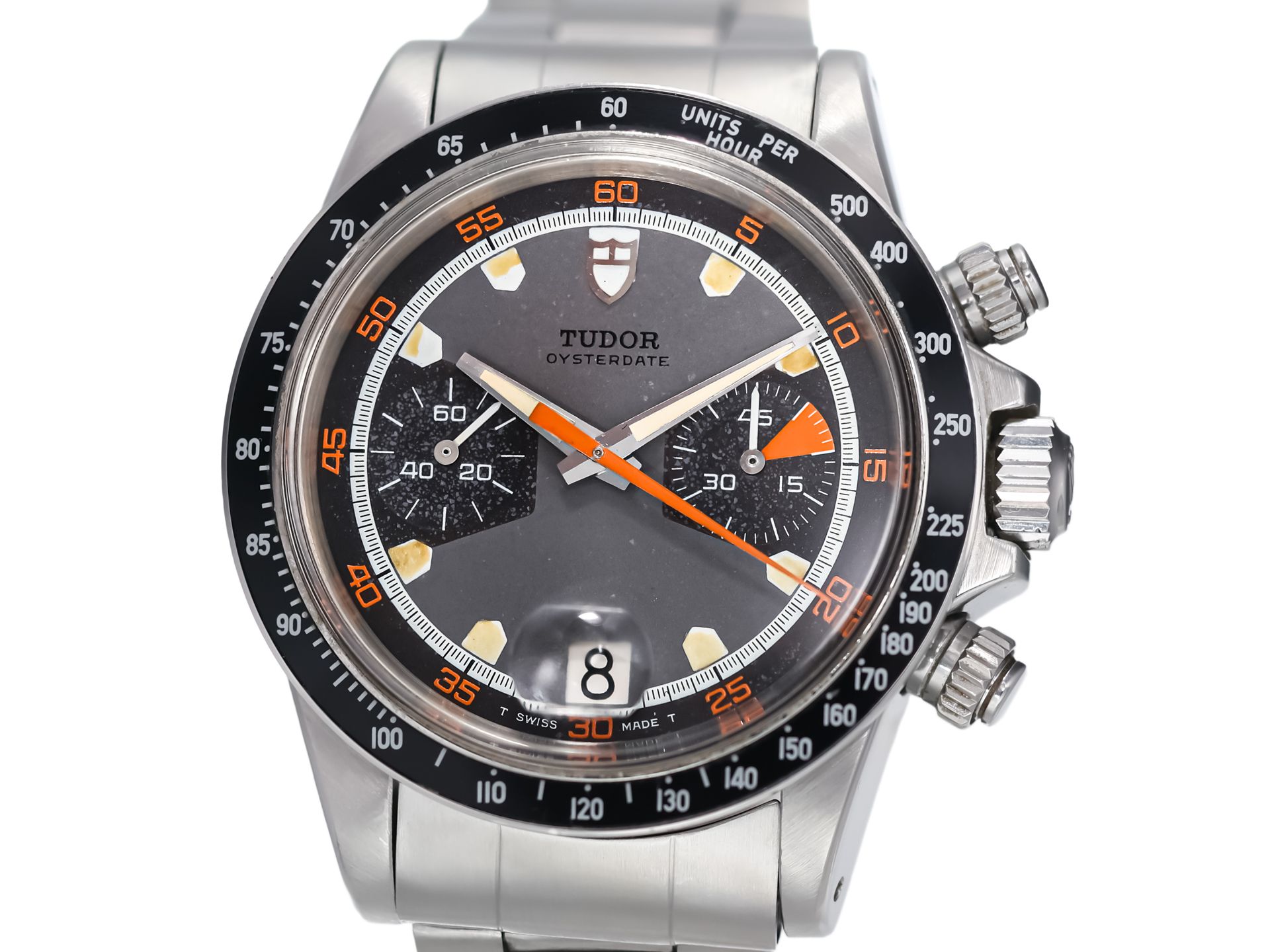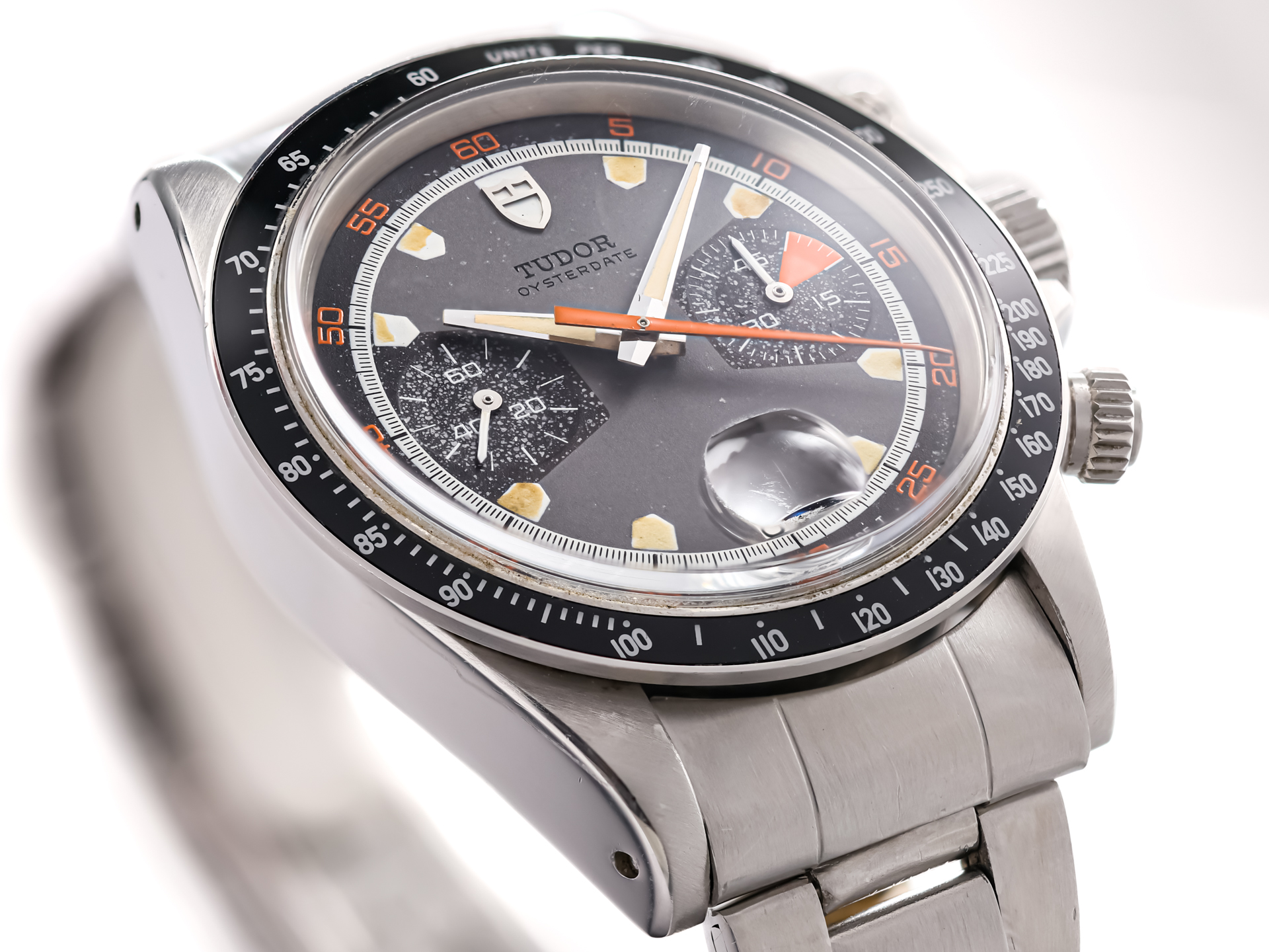 Tudor Oysterdate Chronograph Monte Carlo Homeplate Ref. 7031/0 – Stainless Steel – Grey Tritium Dial – Folded Bracelet – 1971 – Rare