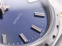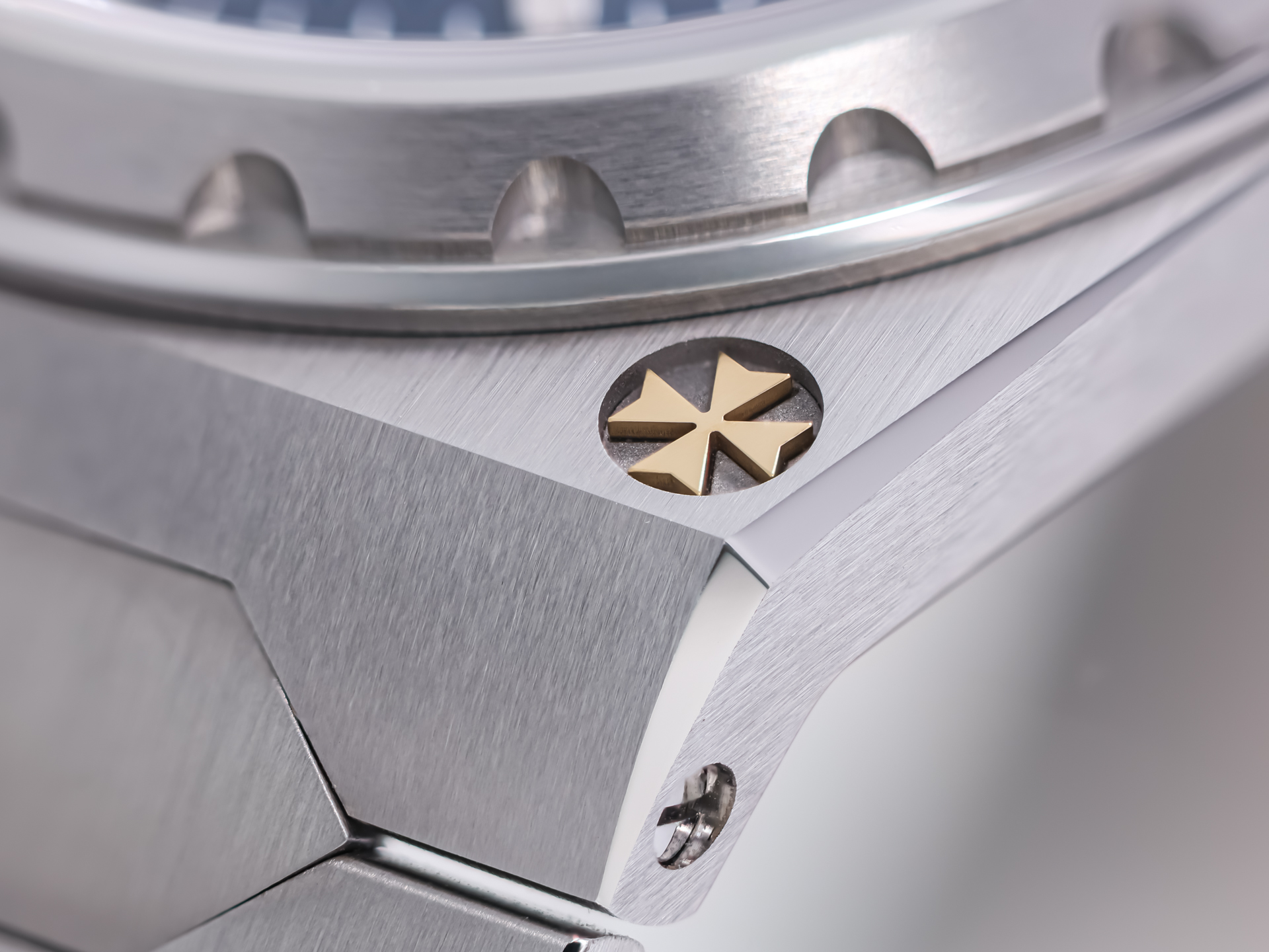 The watch is housed in a beautifully executed 37 mm stainless steel case with the unmistakable monobloc construction and fluted bezel that defined the original model. The integrated stainless steel bracelet flows seamlessly from the case, offering exceptional comfort and unmistakable 1970s design language. At 5 o’clock, the applied Maltese Cross emblem subtly references the heritage of the Maison—an elegant signature detail true to the historic original.