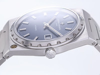 The blue dial is refined and perfectly balanced, featuring applied hour markers and baton hands with Super-LumiNova for optimal legibility. The clean, date-equipped layout preserves the minimalist sophistication that made the 222 an icon, while the slim profile ensures a remarkably elegant wrist presence.