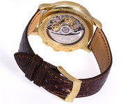 Paired with a rich chocolate brown crocodile leather strap and secured by its original 18k yellow gold pin buckle, this watch exudes understated prestige on the wrist.