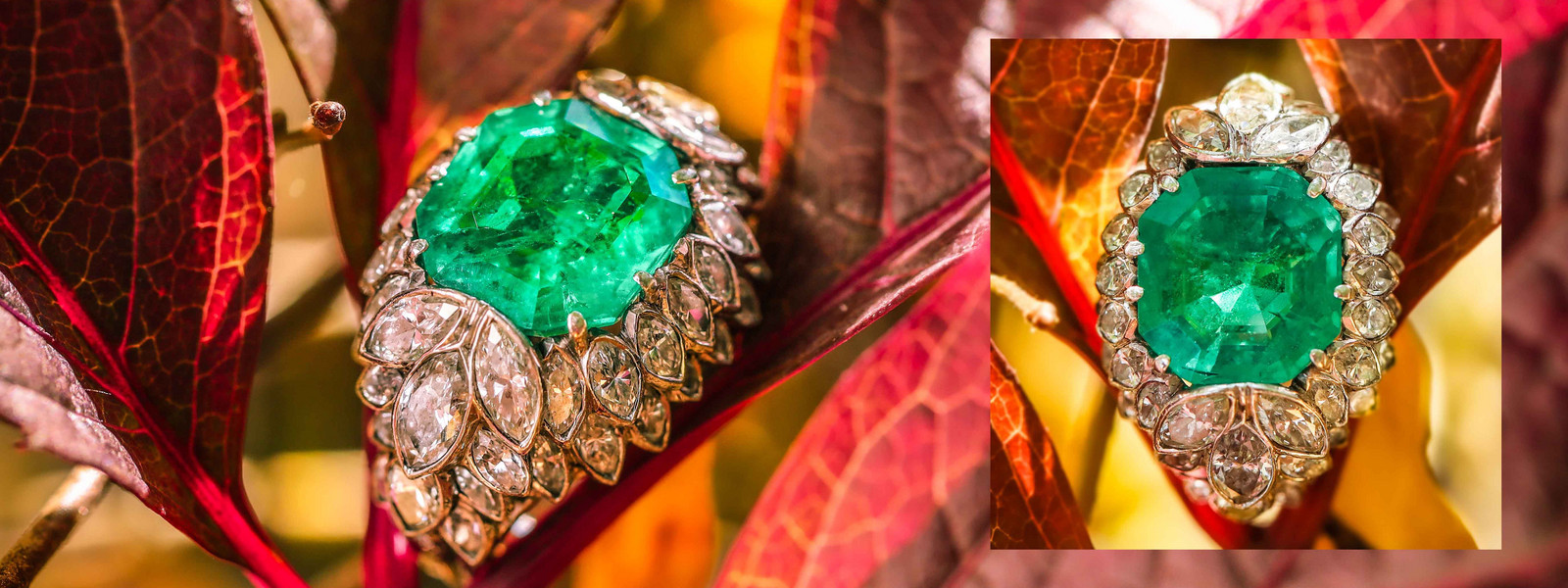 Ring 950 Platinum Colombien Emerald circa 4,75ct Diamonds circa 5,10ct SI2-J Ring Size 49 Epoch 1940-1950