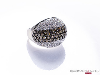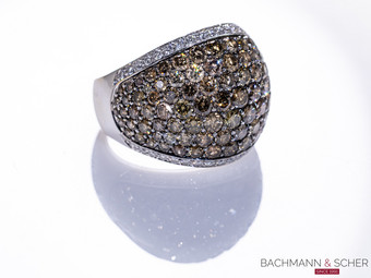 Ring Dome 18K White Gold 130 Diamonds Champagne circa 2,20ct Ring Size 57