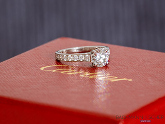 Cartier Solitaire Ring 950Platinum 1Diamond 1,21ct VVS1-F 18Diamonds 0,43ct VS1-G Ring Size 51 Box GIA Certificate Original Retail Price €31.000,-