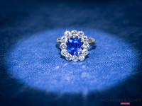 Ring 18K White Gold 13 Diamonds1,30ct VS2-G 1Sapphire 2,20ct Ring Size 58