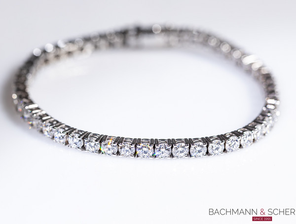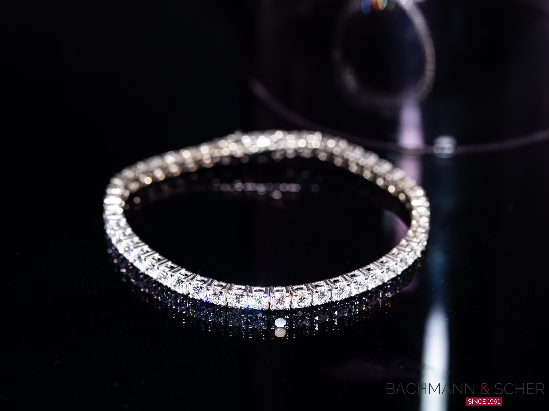 Bachmann & Scher can offer you a Rivière Tennis-Bracelet in 18 k white gold.
