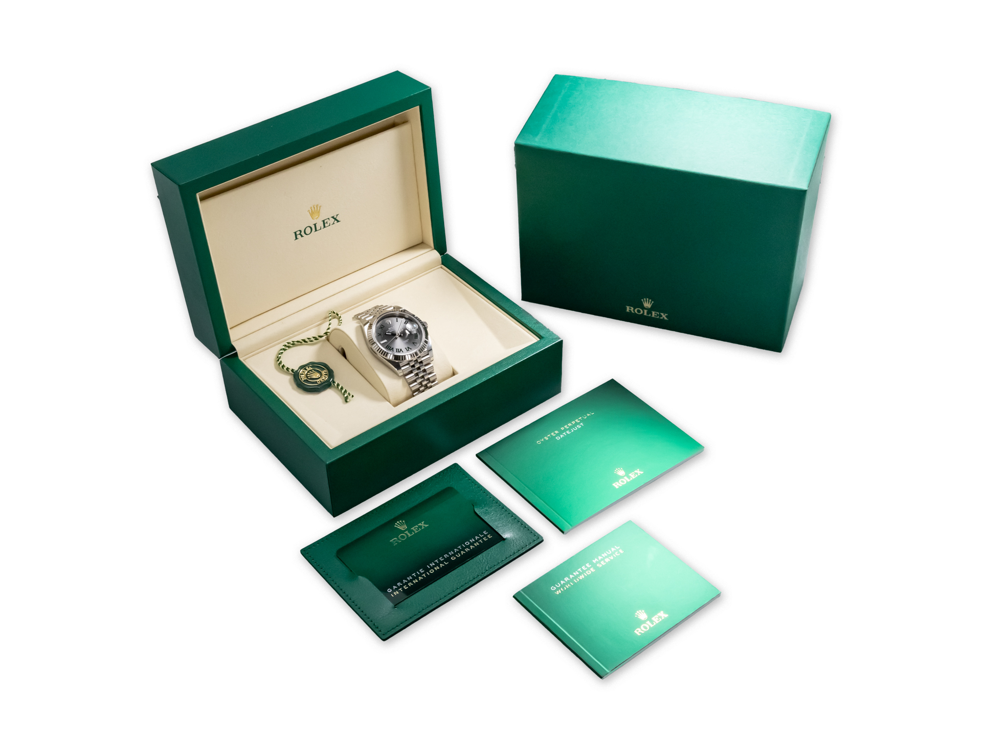 This Rolex Datejust 41 “Wimbledon” Ref. 126334 is offered with: